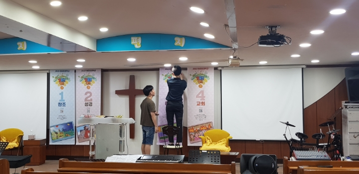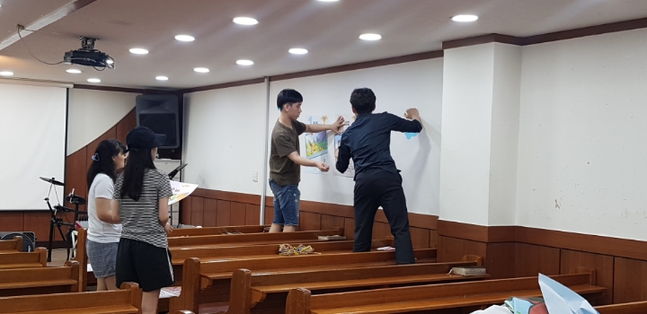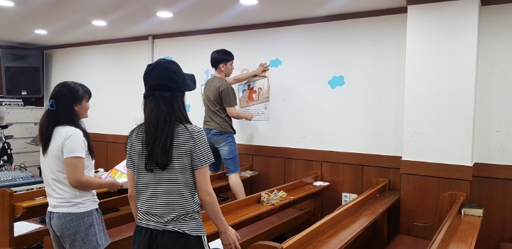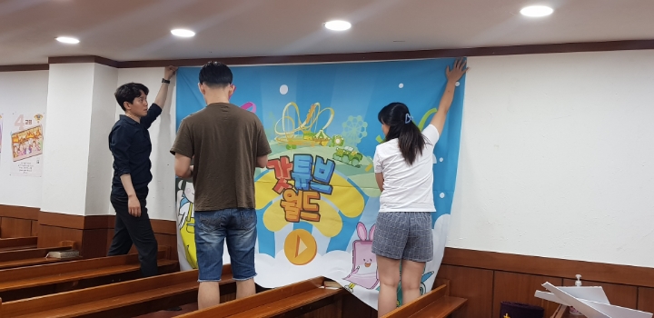2019년 여름성경학교 준비를, 전도사님과 아동부 쌤들이 비전홀에 모여 준비를 했습니다~🤗