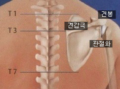 어깨관절은 세 종류의 뼈 흉골, 쇄골, 견갑골이 서로 연결되어 4개의 관절 즉, 흉골과 쇄골이 이어진 흉쇄관절, 견봉과 쇄골이 이어진 견쇄관절, 견갑골과 흉추가 이어지는 견흉관절 그리고 견갑골 외측 오목면에 상완골두가 맞물려 형성된 관절와상완관절로 이루어지는데, 이들 4개의 관절 중 3개의 관절이 일곱 관절로 형성된 견갑골에 연결되는 관절들이라는 것이다. 이는 견관절의 병변에서 견갑골의 기능이 중요하다는 증거다. 견갑골의 구조와 생리를 거듭 살펴본다.