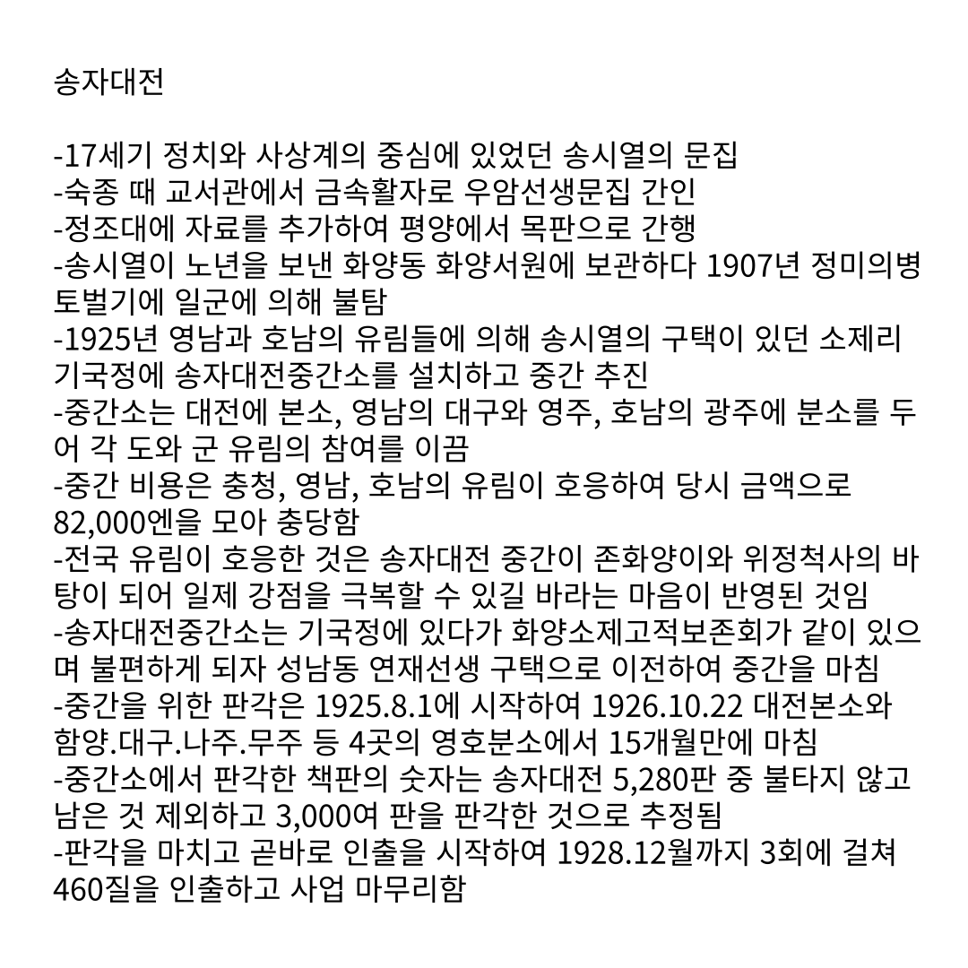 [한밭 문화단신] 시사편찬위 자료로 다시 보는 송자대전 작성자한밭문화마당|작성시간24.04.19|조회수55 목록 댓글 0 글자크기 작게가 글자크기 크게가 다음검색 현재 게시글 추가 기능 열기 북마크 공유하기 신고 센터로 신고 댓글 댓글 0 댓글쓰기 답글쓰기 댓글 리스트