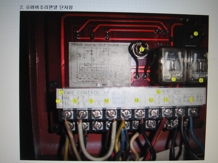 7 ~14. 슈퍼비조리 도면상의 1~9번 까지의 단자와 동일한 것으로 실제의 단자임