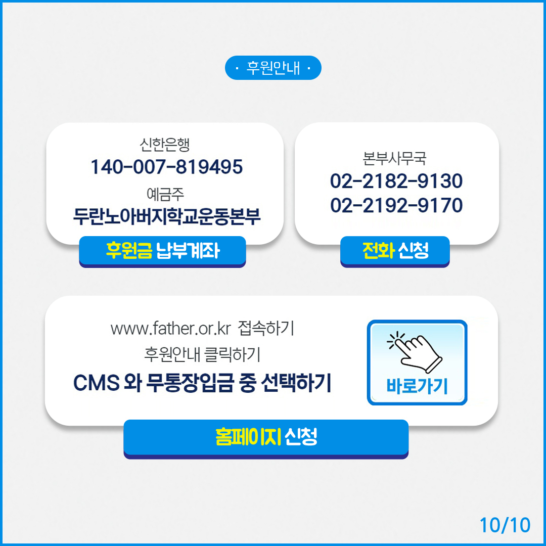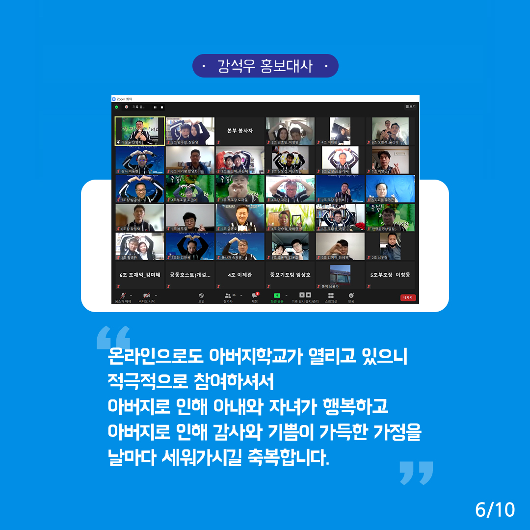 두란노아버지학교 카드뉴스 5월 첫째주 작성자유을규(본부124기)|작성시간21.05.05|조회수81 목록 댓글 1 글자크기 작게가 글자크기 크게가 다음검색 현재 게시글 추가 기능 열기 북마크 공유하기 신고 센터로 신고 댓글 댓글 1 댓글쓰기 답글쓰기 댓글 리스트 작성자전용기(계룡대4기) | 작성시간 21.05.06 귀하신 섬김에 늘 감사드립니다^^ 댓글 전체보기