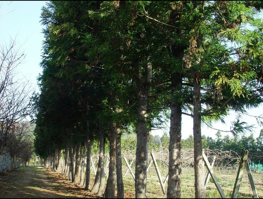 낙우송과, 일본이 고향, 우리나라는 1970년대 심은 것들이 대부분이다. 일본도 패전후 조림과 목재이용을 위해 많이 심었지만 지금은 생태계 파괴, 국민들의 꽃가루 알레르기로 골치아픈 존재가 되고 있다. 중국의 여강, 일본 도토리현에서 봤던 몇 백 년된 고목이 떠오른다.