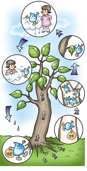 2) 뿌리에서 줄기를 통해 올라온 물은 대부분 잎을 통해 빠져 나가며 환경요인(빛,바람등)에따라 잎을 통해 빠져 나가는 물의 양은 달라짐