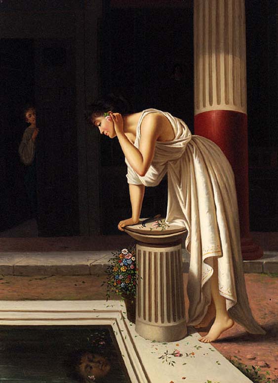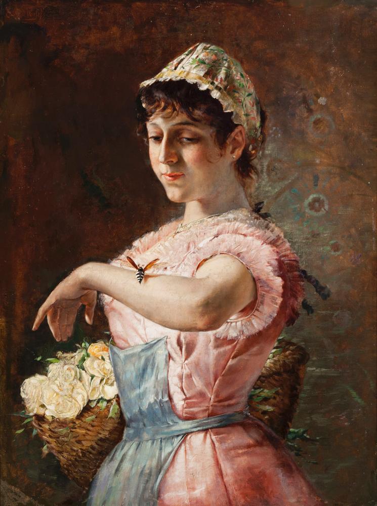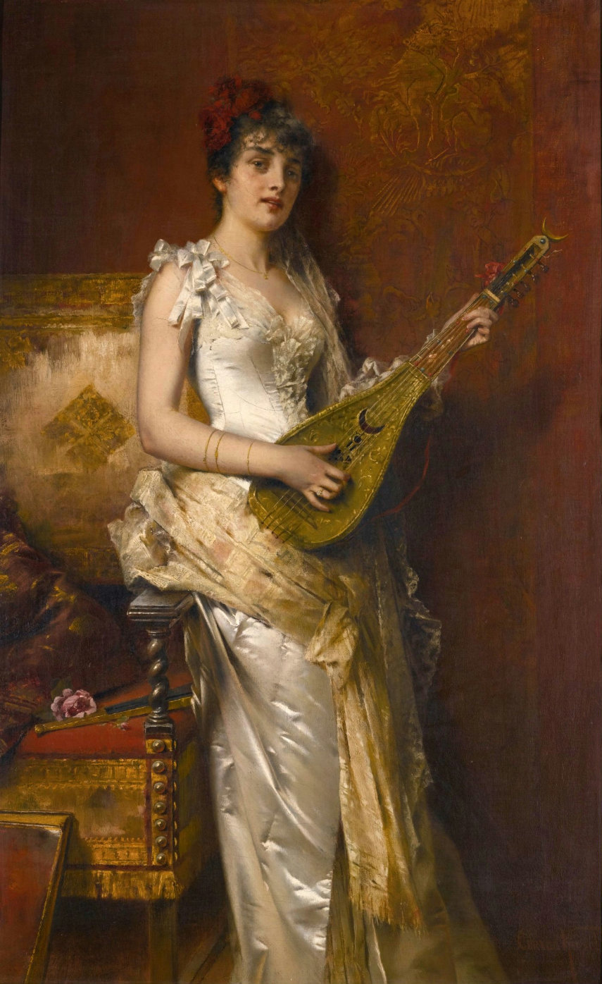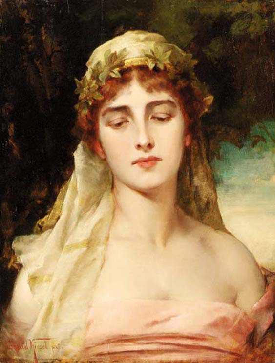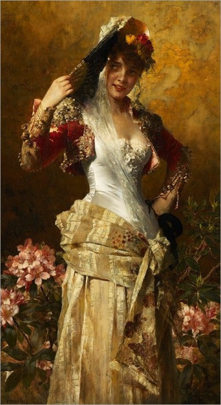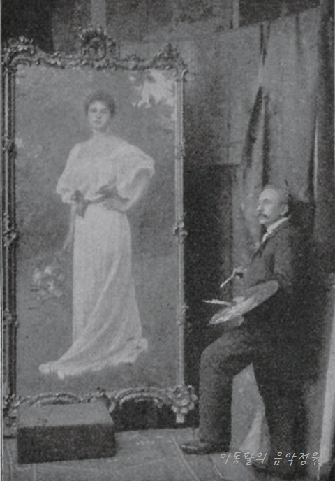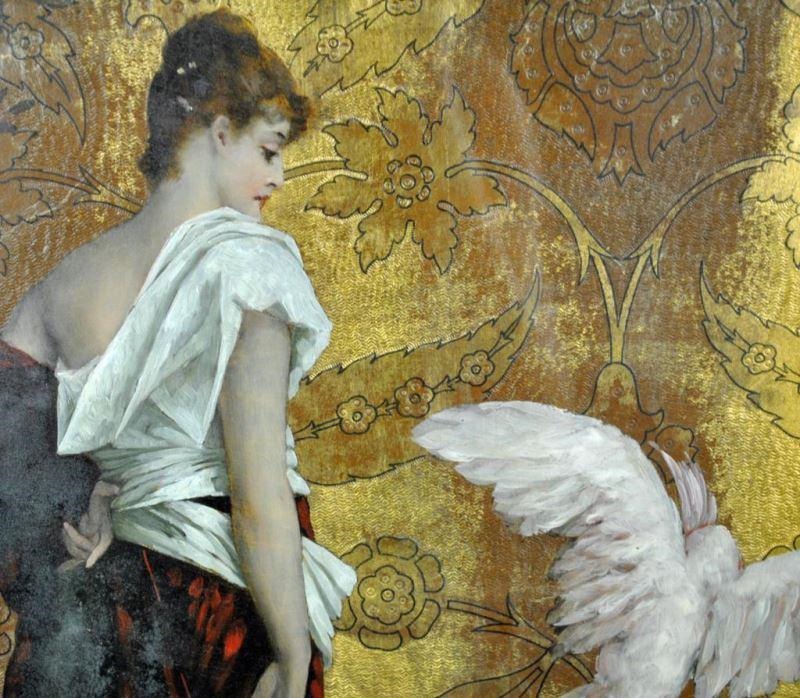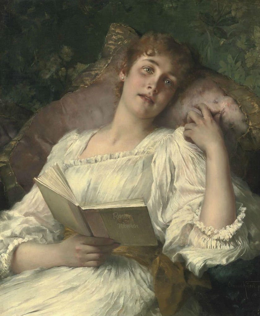 그는 아름다운 인테리어에 젊은 아름다운 소녀 또는 여성을 묘사하는 것을 선호했다.