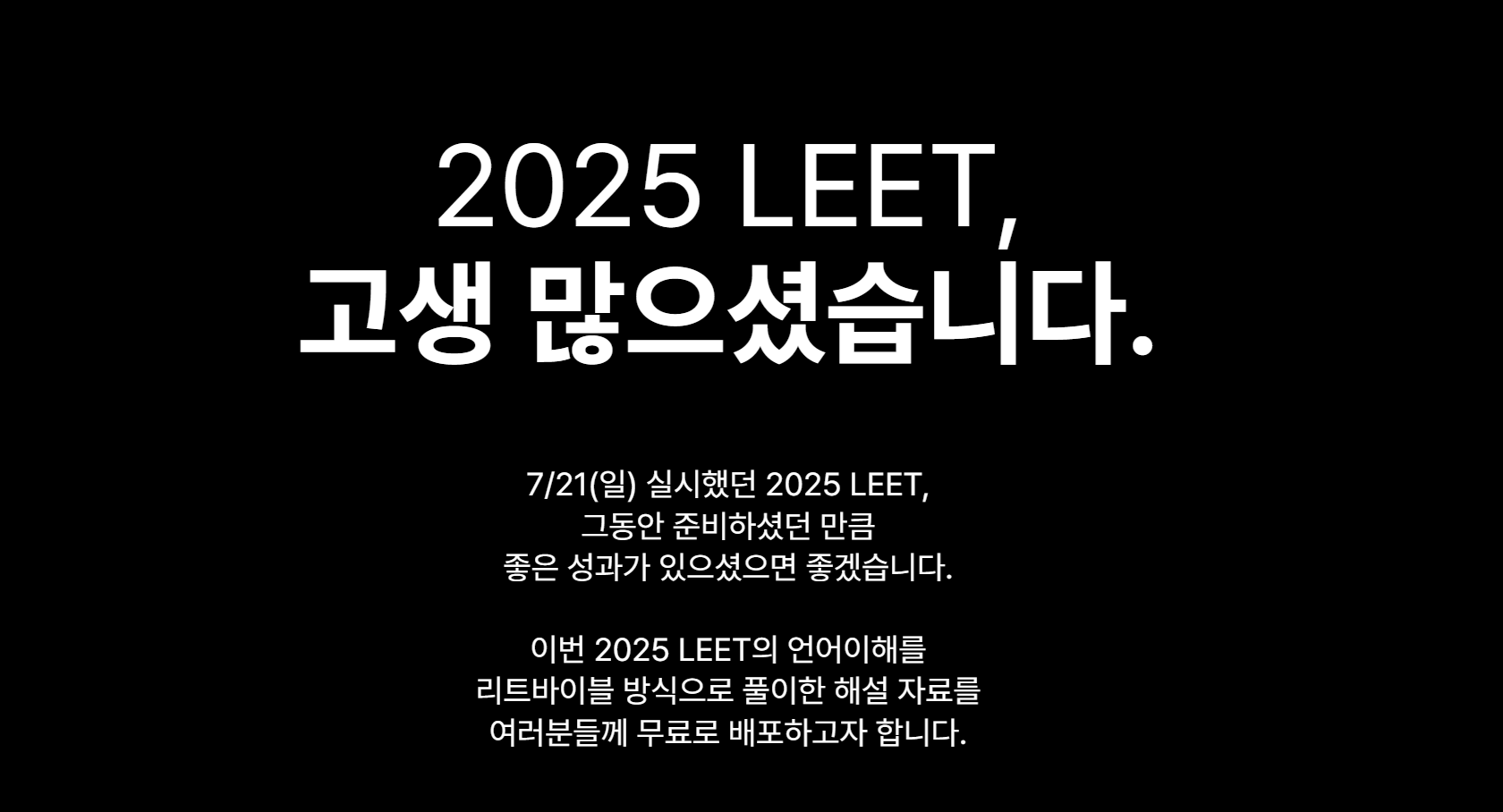 오늘 (7월 21일)에 실시된 2025학년도 LEET 시험에 대한 무료해설을 공개합니다.