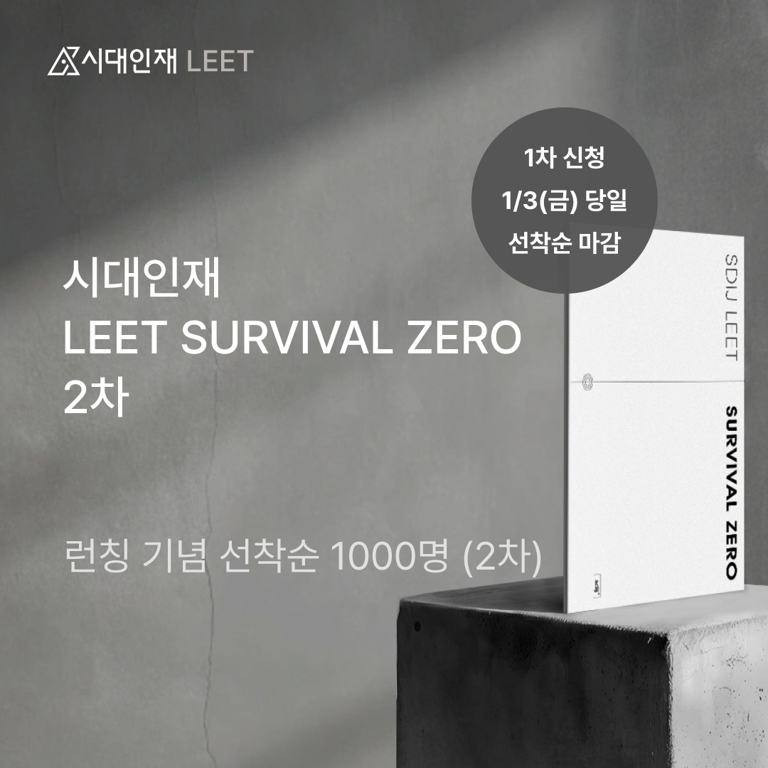 시대인재 LEET가 런칭기념으로 자체 제작한 리트 모의고사인 LEET SURVIVAL ZERO를 선물합니다.