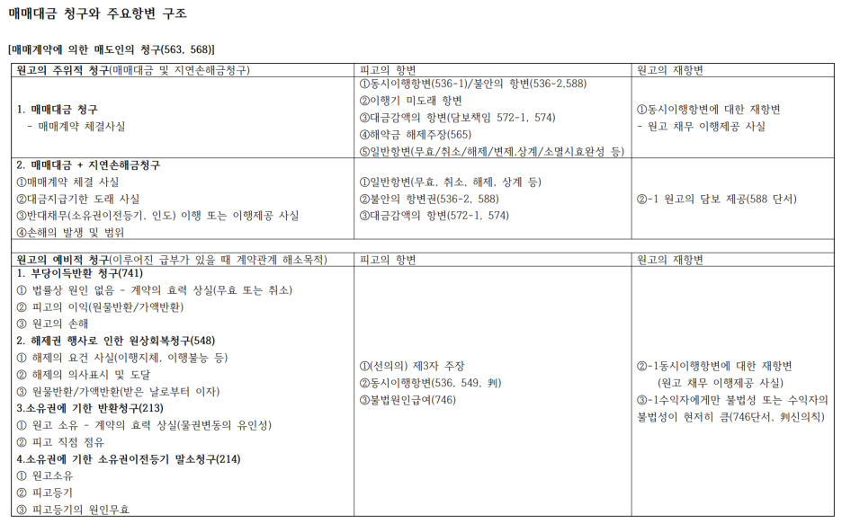 | 8강 | 매매대금 청구 및 주요항변(무효, 취소, 해제, 동시이행항변권) 기출사례문제 1, 2, 3 |