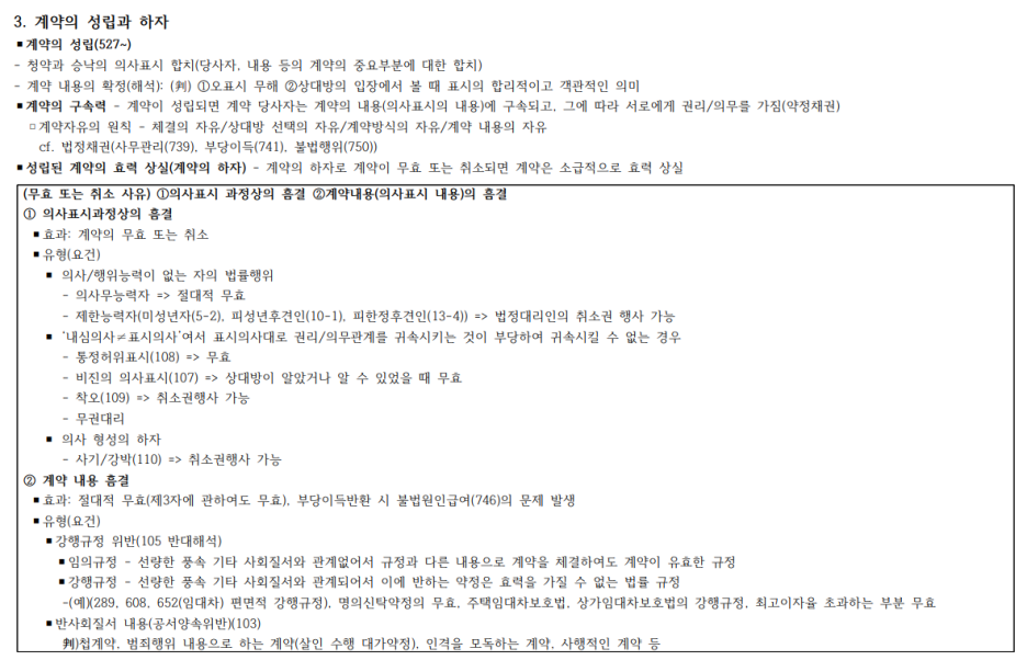 2-1 계약의 성립, 해석 및 하자(무효,취소)