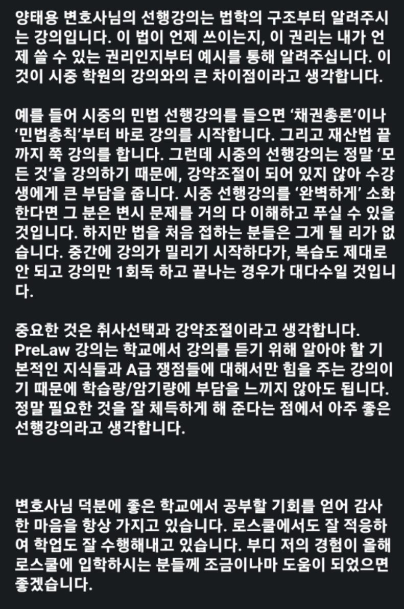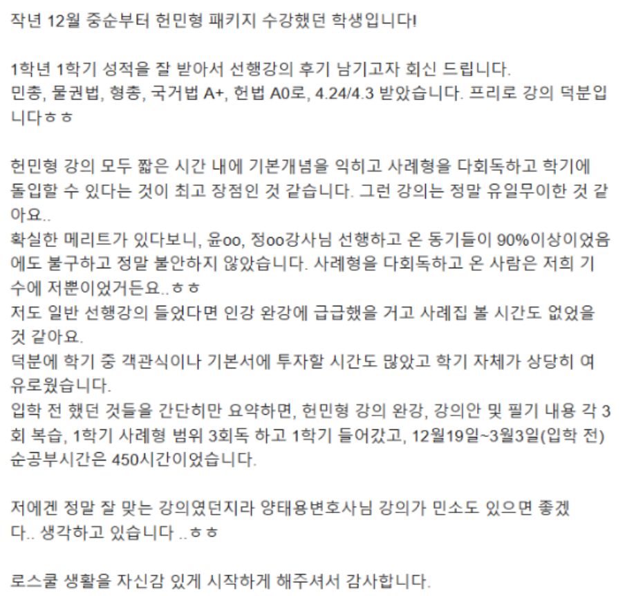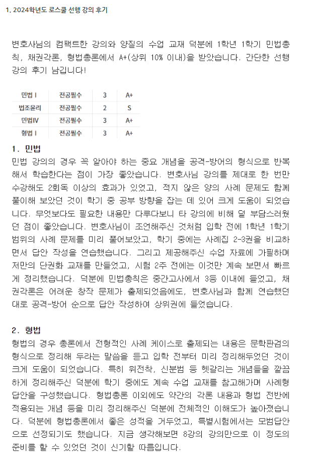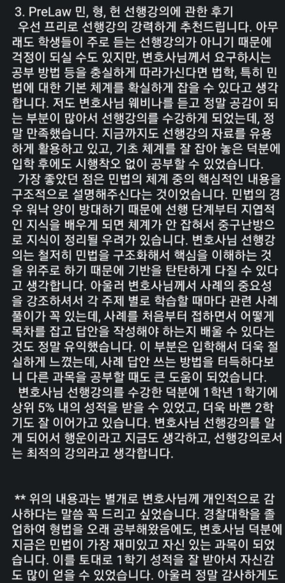 - 로스쿨 민법/형법/헌법 선행강의(약 350명 내외 누적 수강생)