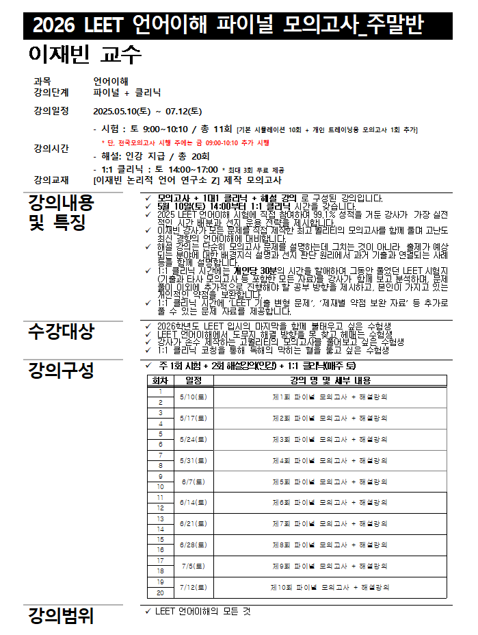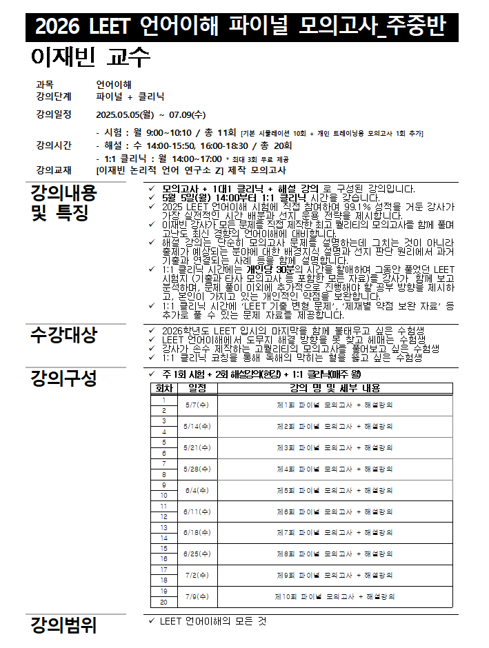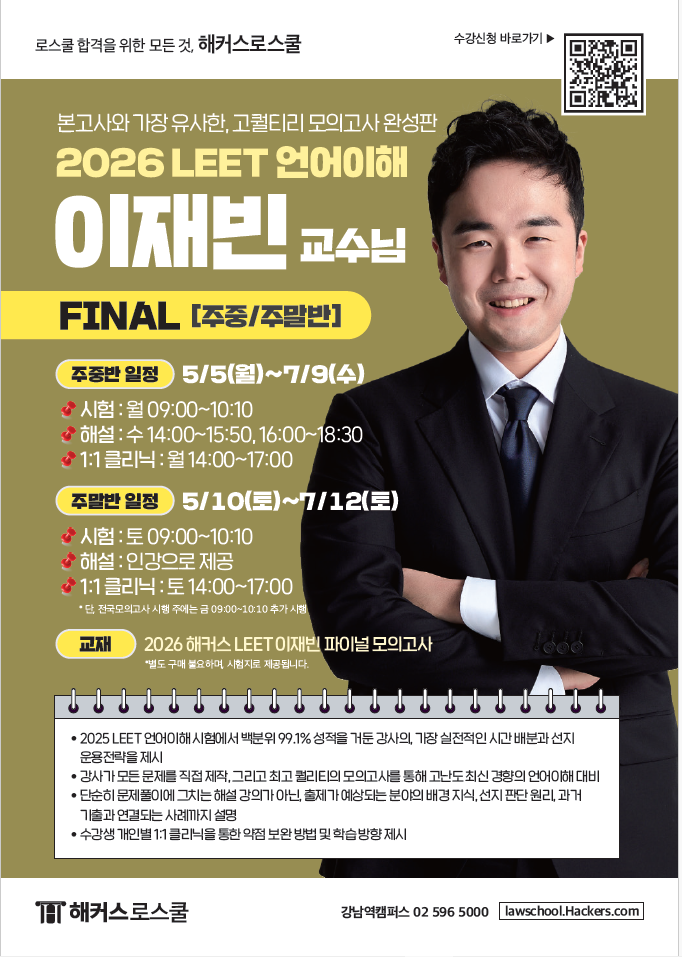 ๐ฅ ํด์ปค์ค๋ก์ค์ฟจ 2026 LEET ๋๋น ์ด์ฌ๋น ๊ต์๋ ์ธ์ด์ดํด ํ์ด๋ ๋ชจ์๊ณ ์ฌ ๐ฅ
