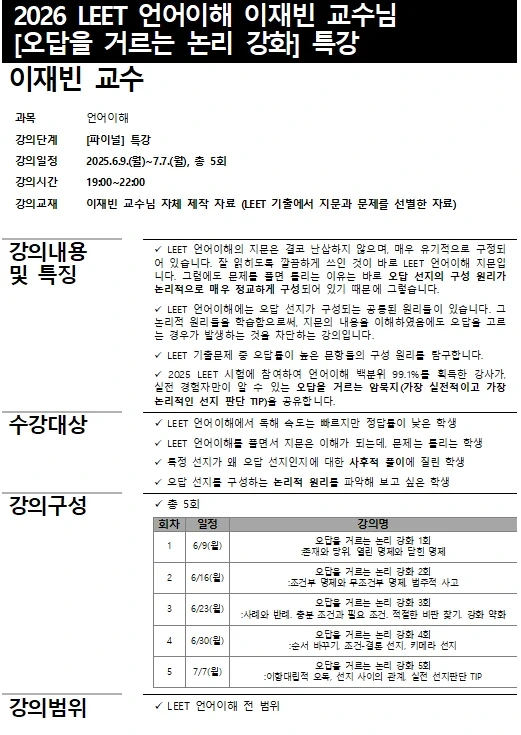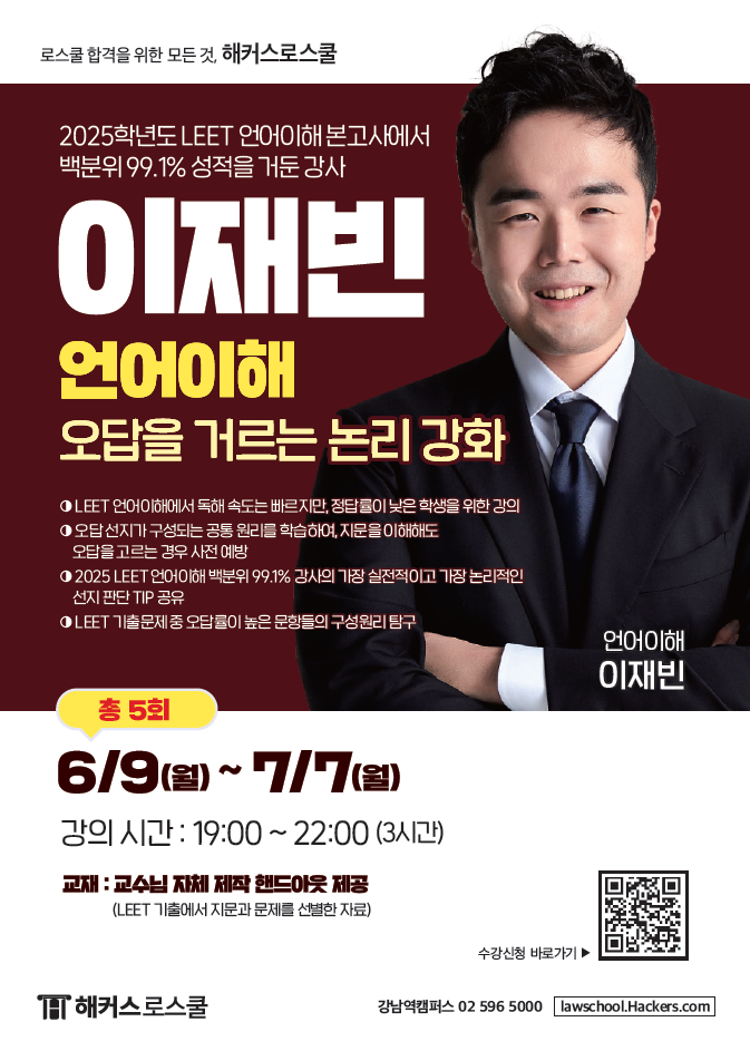 ๐ํด์ปค์ค๋ก์ค์ฟจ 2026 LEET ๋๋น ์ด์ฌ๋น ๊ต์๋ ์ธ์ด์ดํด [์ค๋ต์ ๊ฑฐ๋ฅด๋ ๋ ผ๋ฆฌ๊ฐํ] ํน๊ฐ๐