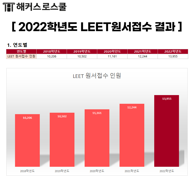 LEET 원서접수 인원도 함께 증가되고 있습니다.
