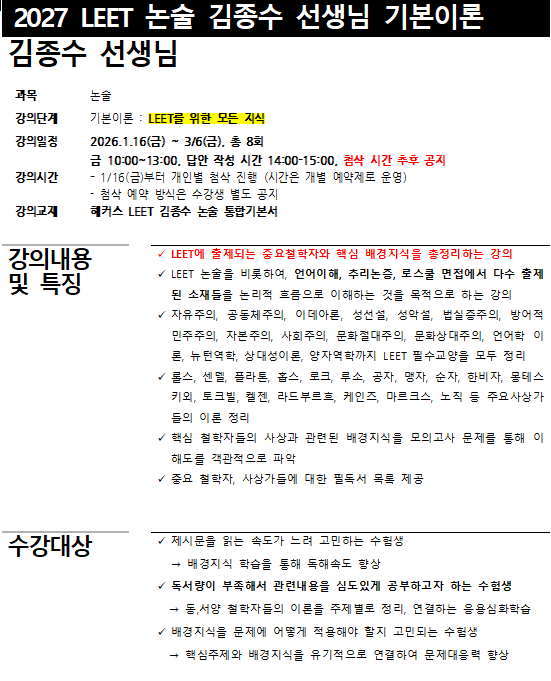 2027 ๋๋น LEET ๋ ผ์ ๊ธฐ๋ณธ์ด๋ก