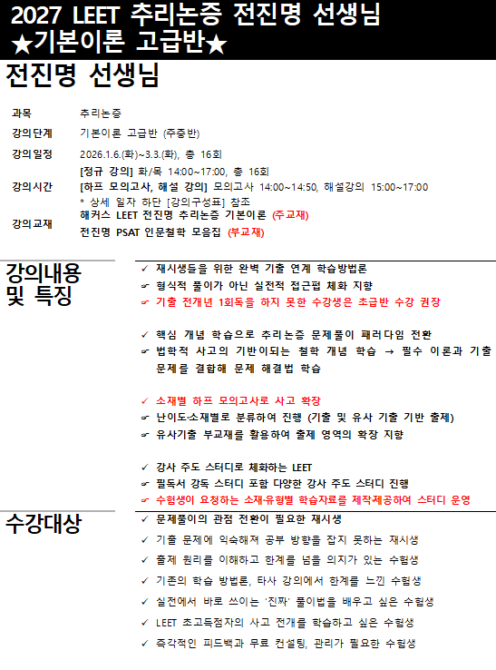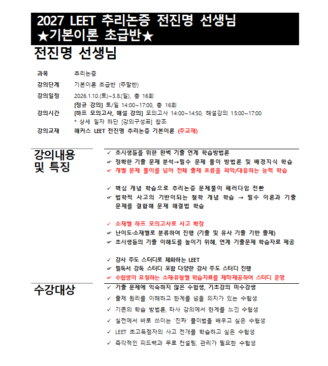 2027 ๋๋น LEET ์ถ๋ฆฌ๋ ผ์ฆ ๊ธฐ๋ณธ์ด๋ก