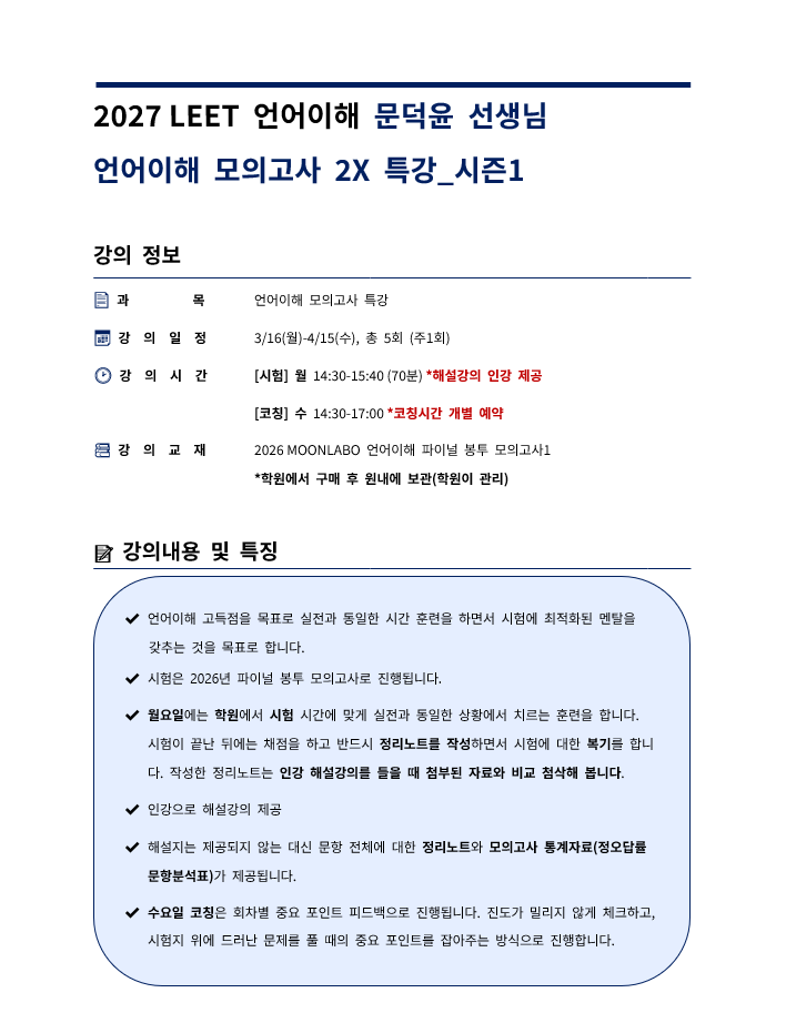 2027 LEET 본고사 전, 빡센 실전 훈련!