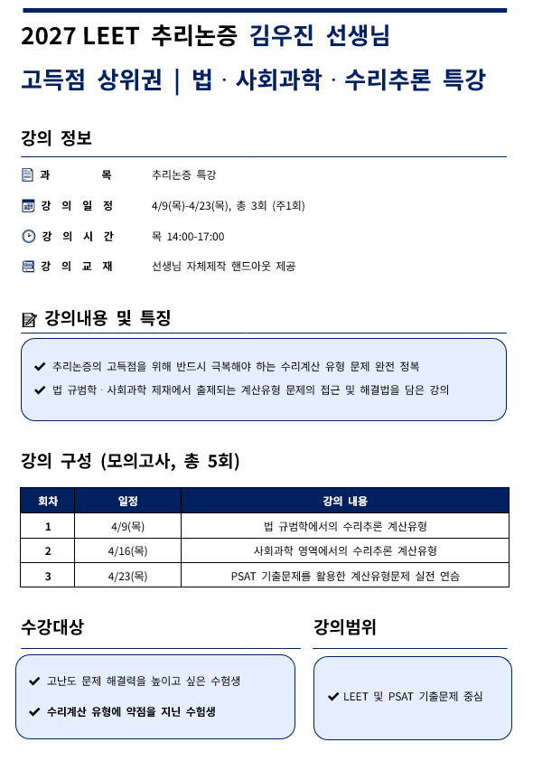 🔎 고득점 상위권|법·사회과학·수리추론 특강 🔎