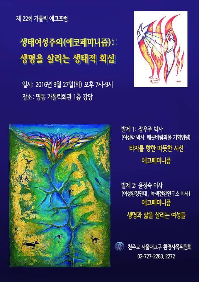 제 22회 가톨릭 에코포럼 - 생태여성주의(에코페미니즘) : 생명을 살리는 생태적 회심 작성자소나무|작성시간16.09.08|조회수56 목록 댓글 0 글자크기 작게가 글자크기 크게가 다음검색 현재 게시글 추가 기능 열기 북마크 공유하기 신고 센터로 신고 댓글 댓글 0 댓글쓰기 답글쓰기 댓글 리스트