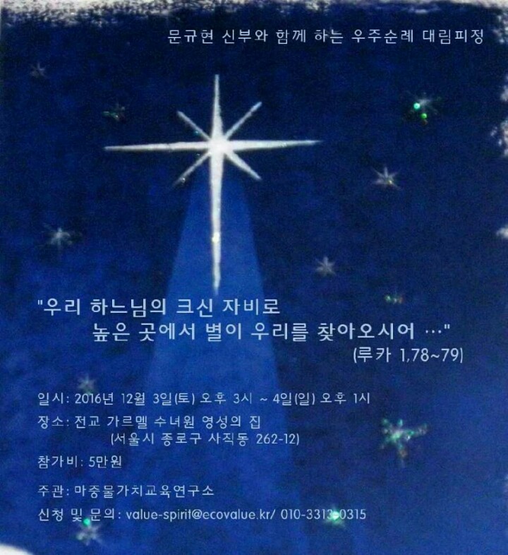 우주순례 피정안내? 작성자금병산|작성시간16.11.24|조회수113 목록 댓글 0 글자크기 작게가 글자크기 크게가 맹샘 올려달라고 부탁하셨어요?임선영릿다 서울교구환경소위원으로부터 준비한 내용 좋을텐데 우주이야기를 공부한 생태적 가치를 잘아는 아씨시정신팀에 강추? 다음검색 현재 게시글 추가 기능 열기 북마크 공유하기 신고 센터로 신고 댓글 댓글 0 댓글쓰기 답글쓰기 댓글 리스트