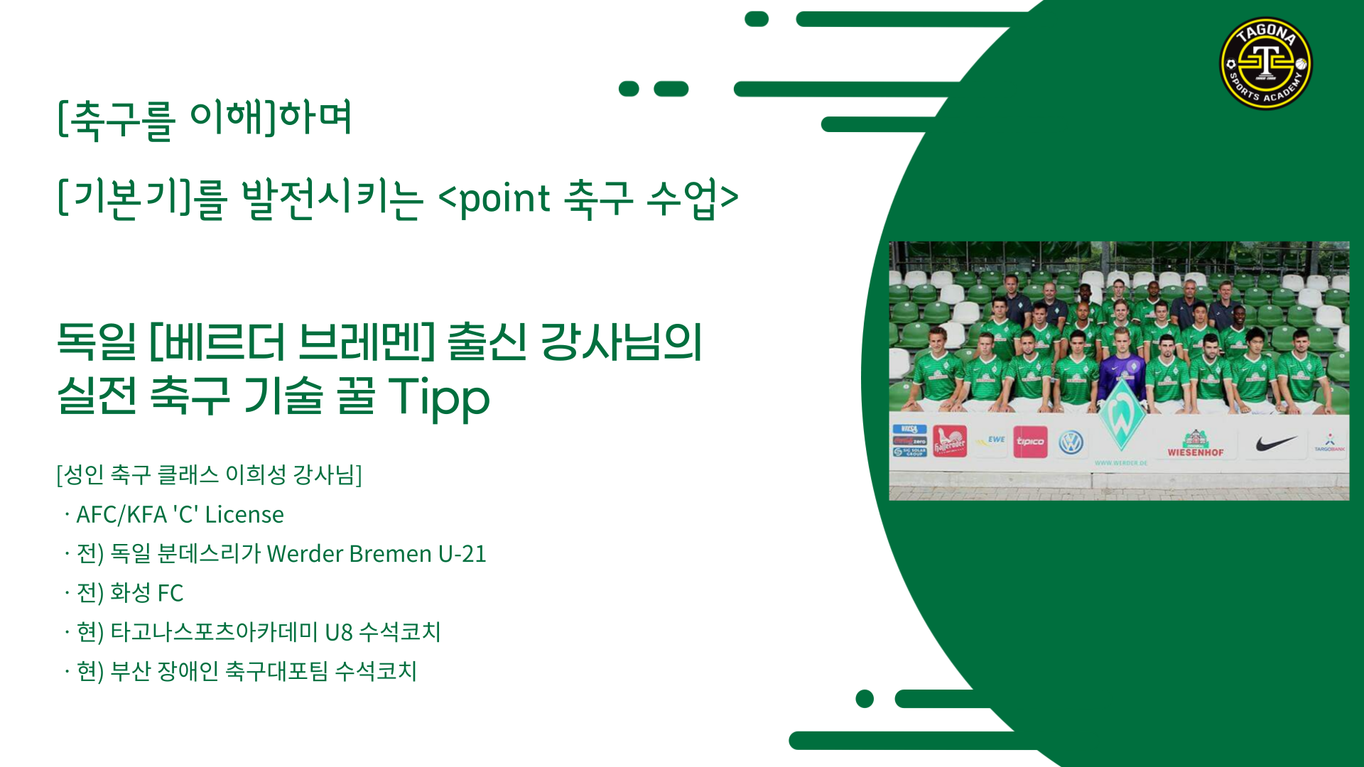 축구를 제대로 배워보고싶은 모든 성인분들을 위해 독일 분데스리가 [베르더 브레멘] 출신 강사님께서 진행하시는 [유럽식축구]수업!!