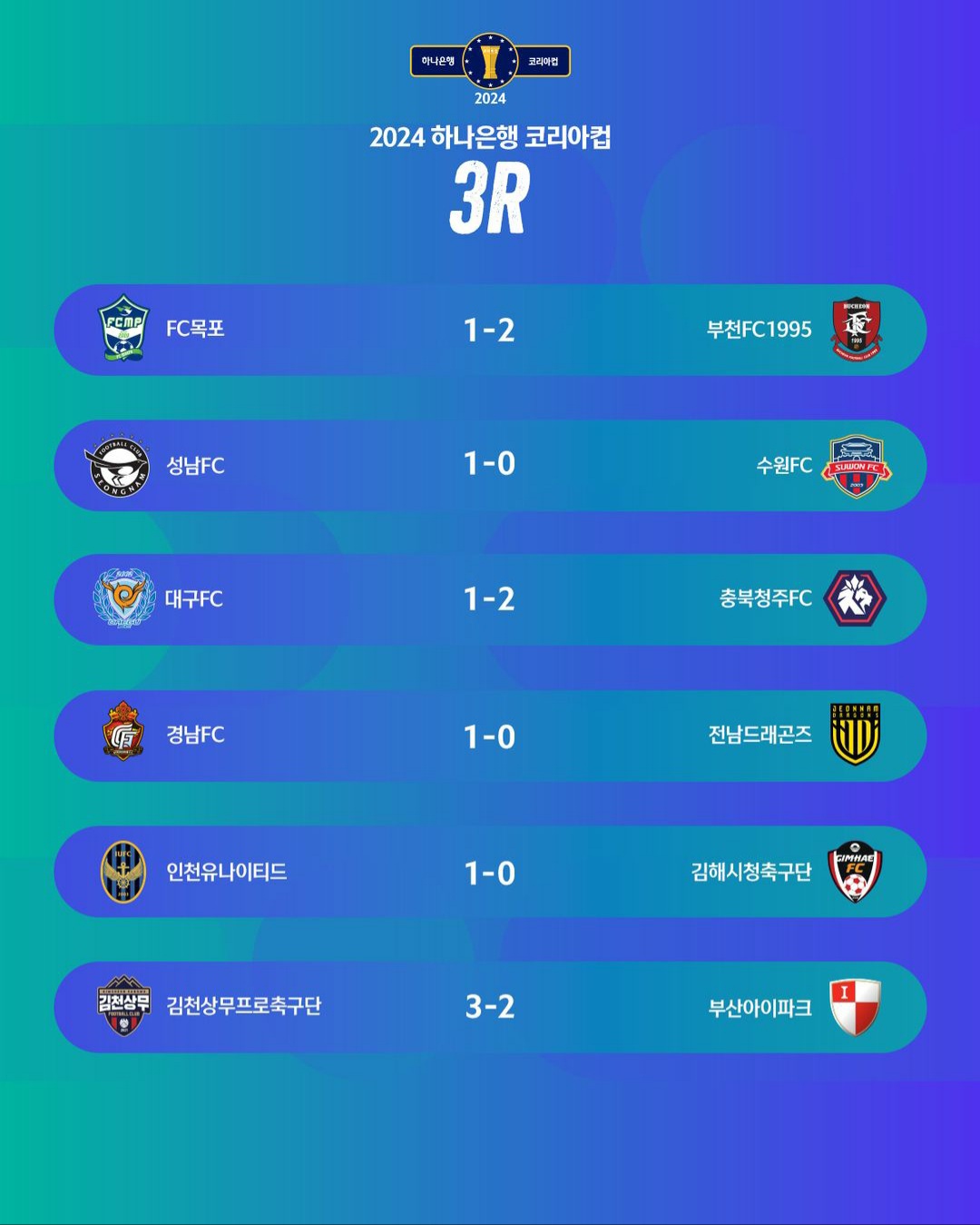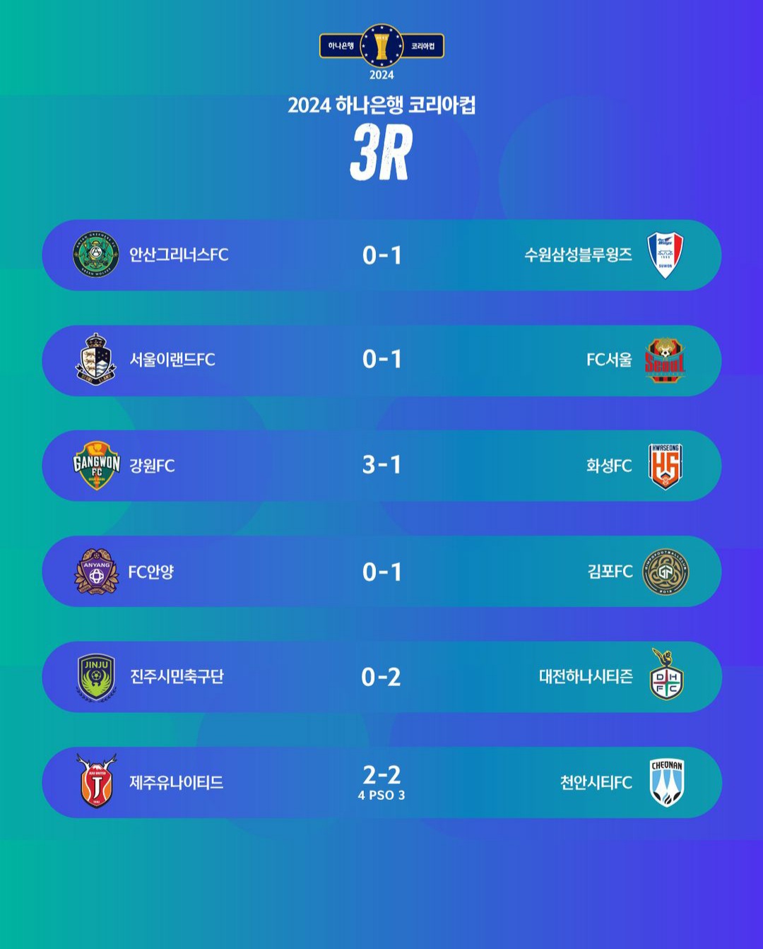 2024 하나은행 코리아컵 3라운드 결과 및 16강 대진표 작성자델피에로|작성시간24.04.18|조회수375 목록 댓글 0 글자크기 작게가 글자크기 크게가 다음검색 현재 게시글 추가 기능 열기 북마크 공유하기 신고 센터로 신고 댓글 댓글 0 댓글쓰기 답글쓰기 댓글 리스트