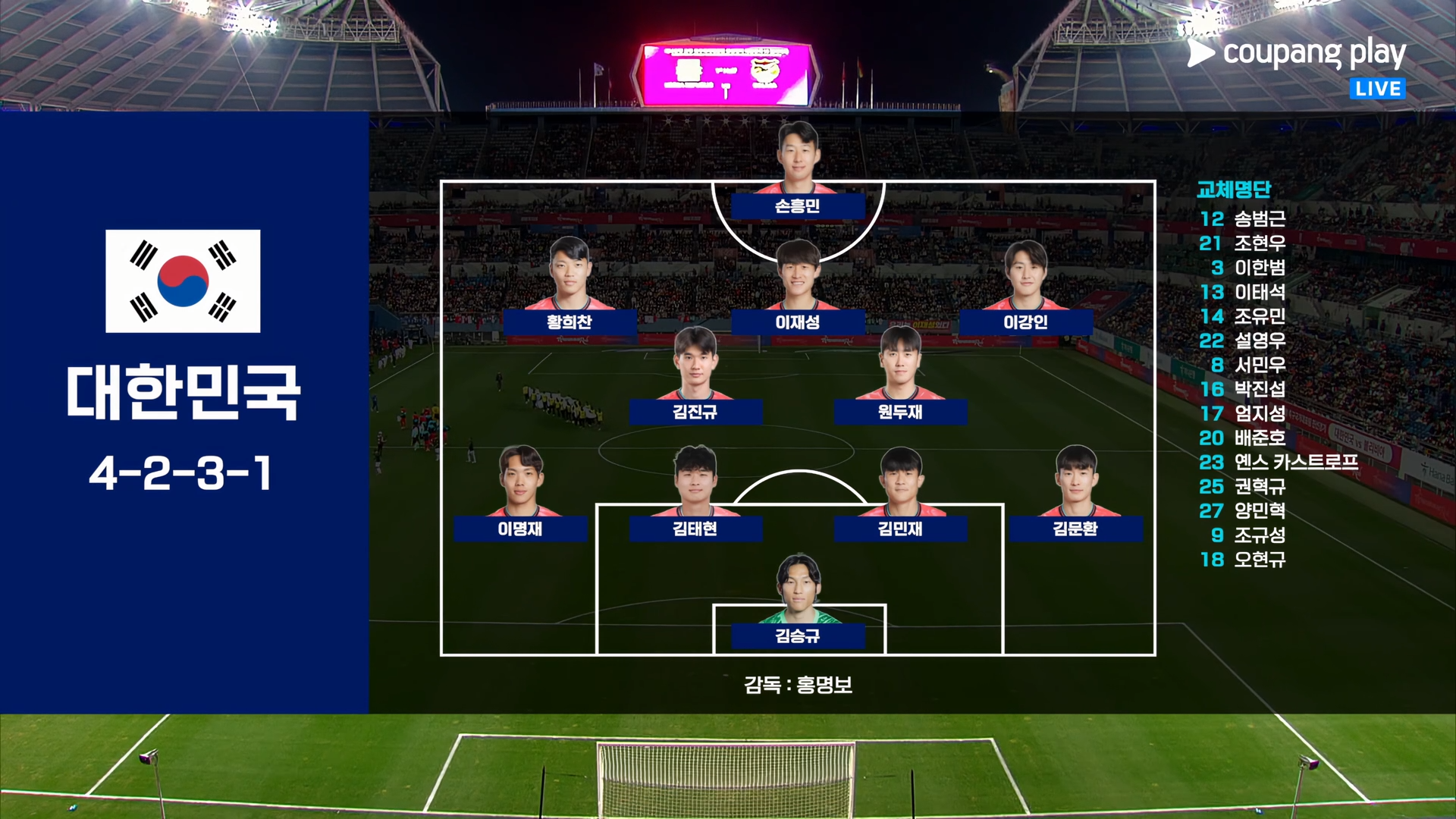 갠적으로 활동량 스피드 있고 개인기 있는 나상호,조영욱,엄원상,이동준 같은 선수들은 포변했으면 어땠을까 싶네요.