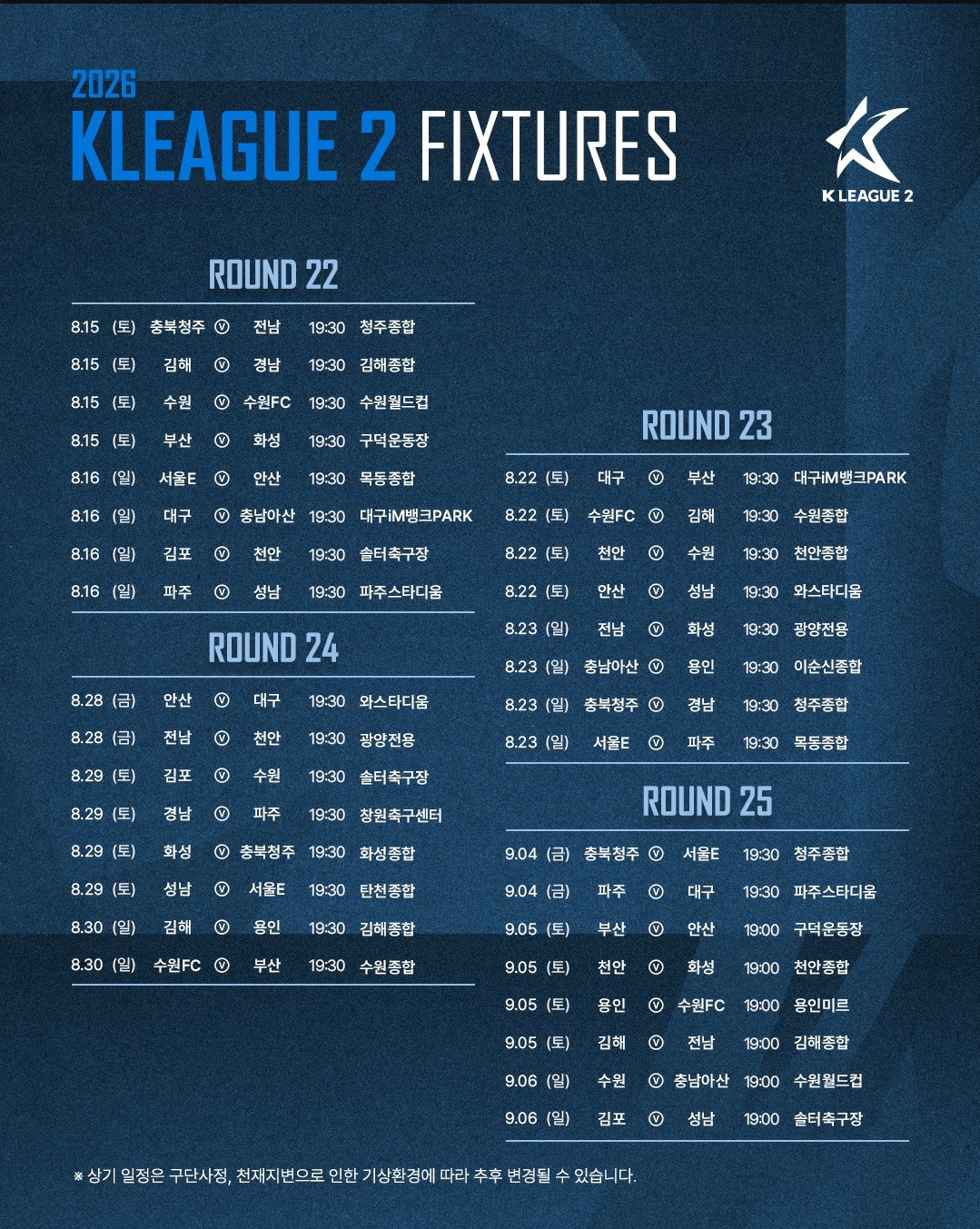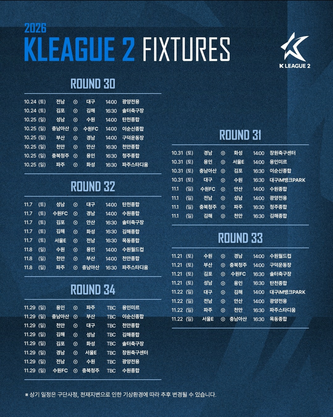 2026 K리그2 일정표 작성자델피에로|작성시간26.01.19|조회수112 목록 댓글 0 글자크기 작게가 글자크기 크게가 다음검색 현재 게시글 추가 기능 열기 북마크 공유하기 신고 센터로 신고 댓글 댓글 0 댓글쓰기 답글쓰기 댓글 리스트