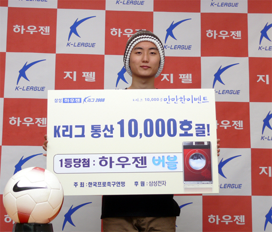 K-리그 10,000호골 만만한 이벤트 행운의 주인공으로 박주환(19.남)씨와 김태홍(27.남)씨가 뽑혀 드럼세탁기’와 ‘김치 냉장고’가 선물로 각각 주어진다.