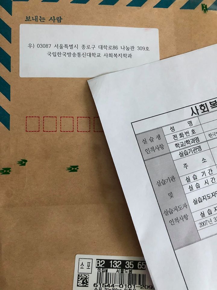 22. (지역애 따라 차이가 있겠지만) 학과에서 배송한지 하루만에 실습확인서가 도착했습니다. 우편으로 받은 실습확인서와 함께 사회복지사 2급 자격증 신청할때 함께 동봉해서 신청을 진행하면 될 것입니다.