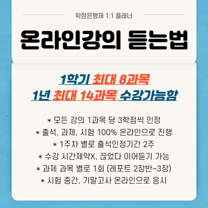 1년 최대 14과목 (42학점)만 들을 수 있고