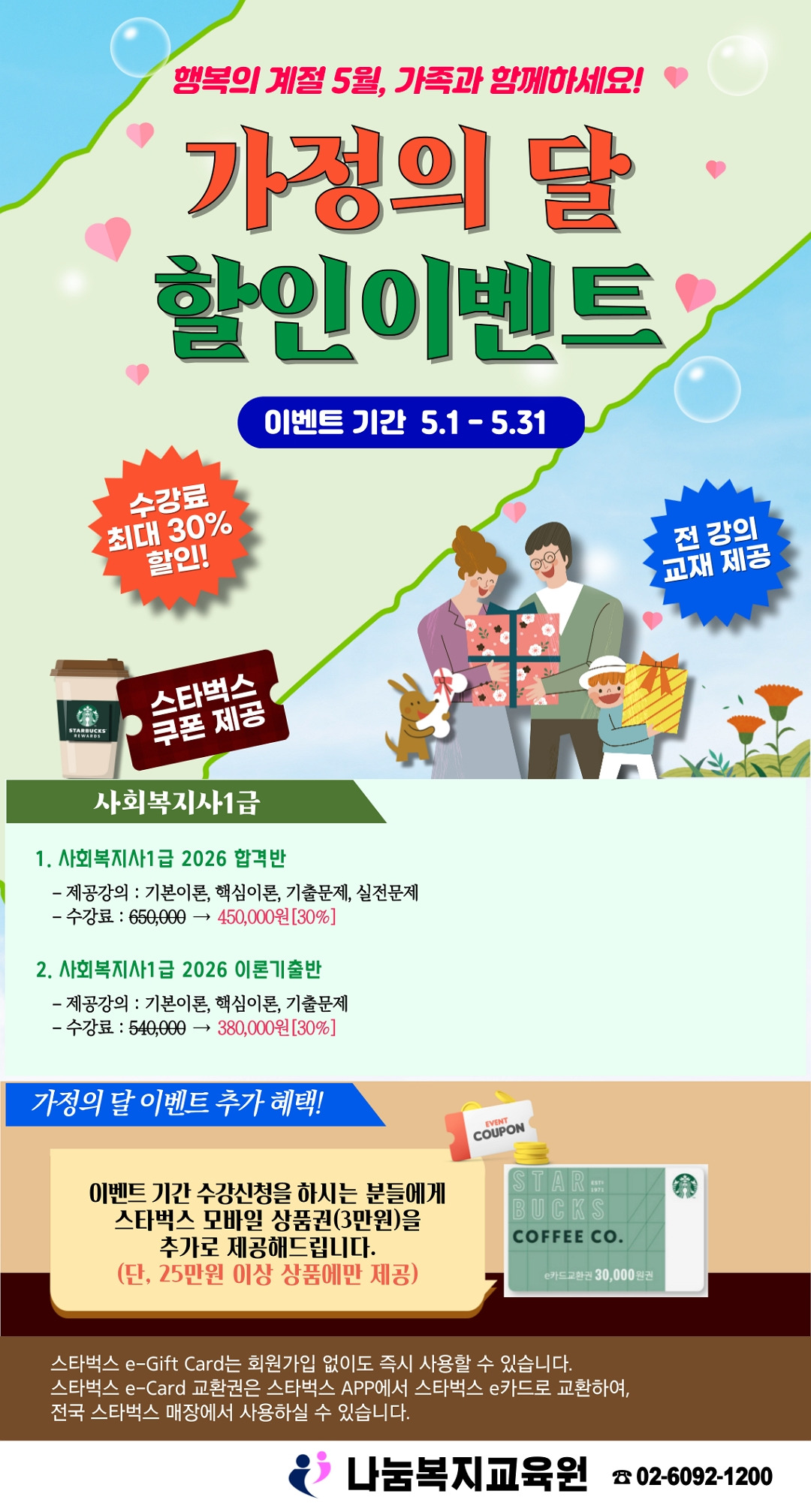 [이벤트 종료] 5월 가정의 달 할인 이벤트 - 사회복지사1급 작성자형준쌤|작성시간25.05.02|조회수85 목록 댓글 0 글자크기 작게가 글자크기 크게가 다음검색 현재 게시글 추가 기능 열기 북마크 공유하기 신고 센터로 신고 댓글 댓글 0 댓글쓰기 답글쓰기 댓글 리스트