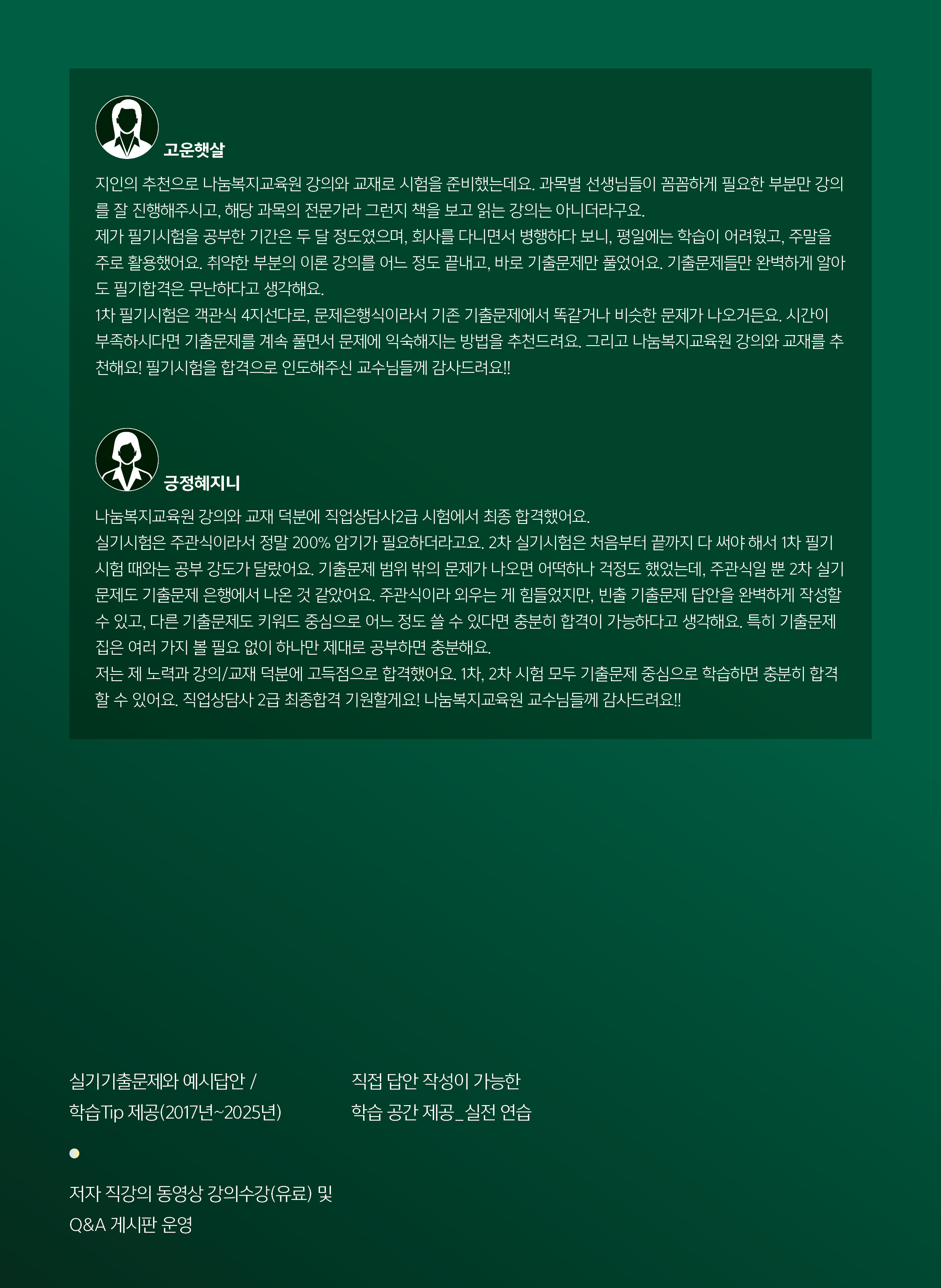 2026 직업상담시 2급 실기기출문제집 출간(12월 30일) 작성자형준쌤|작성시간25.12.20|조회수8 목록 댓글 0 글자크기 작게가 글자크기 크게가 다음검색 현재 게시글 추가 기능 열기 북마크 공유하기 신고 센터로 신고 댓글 댓글 0 댓글쓰기 답글쓰기 댓글 리스트