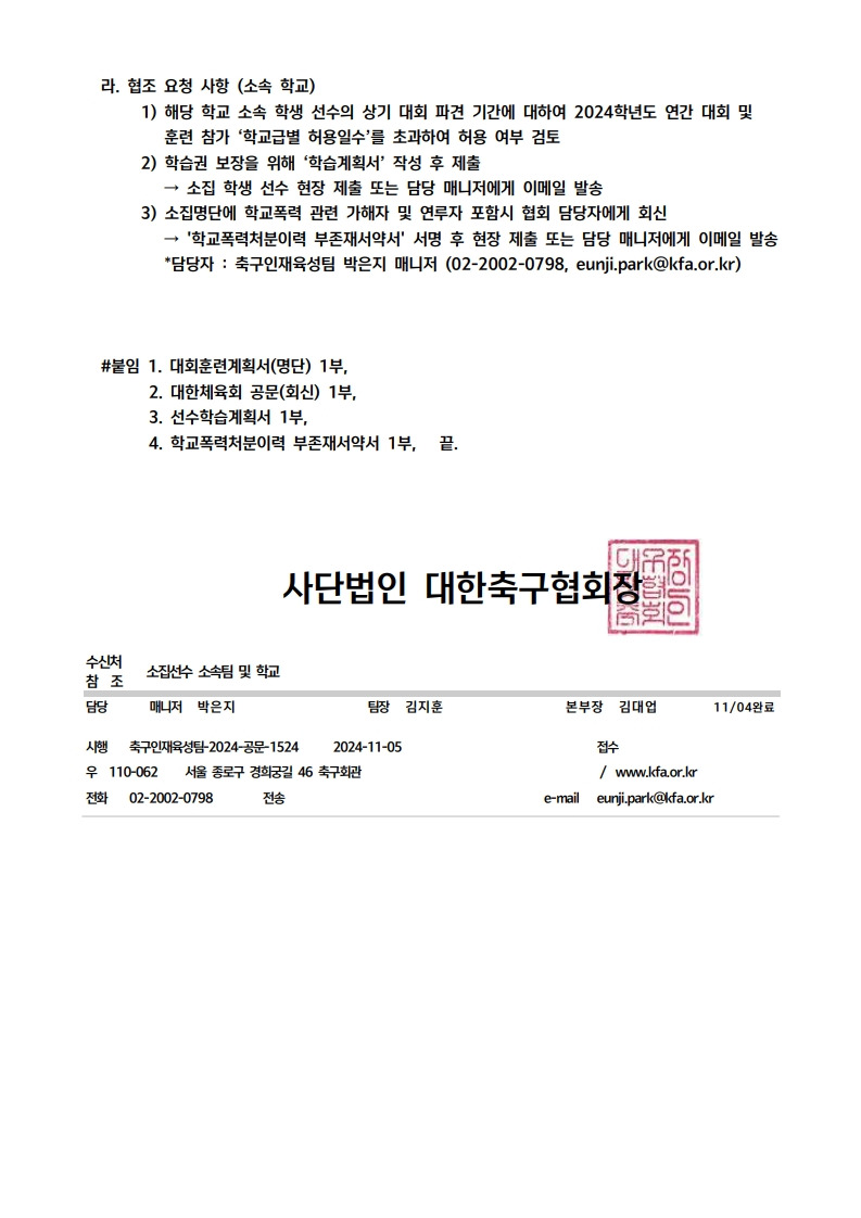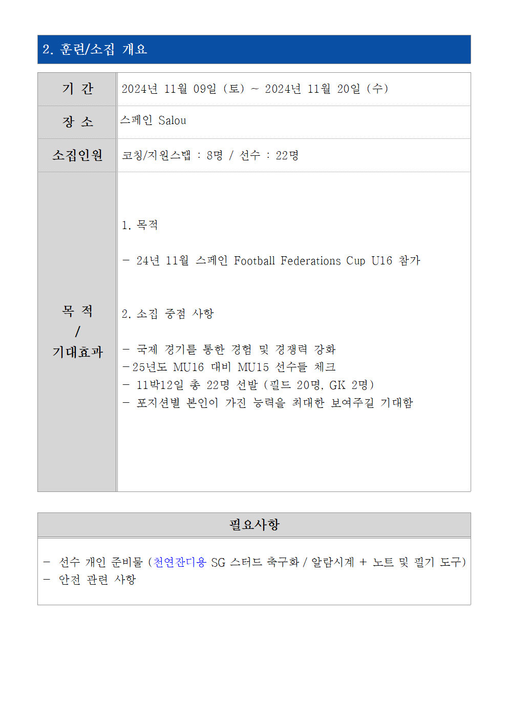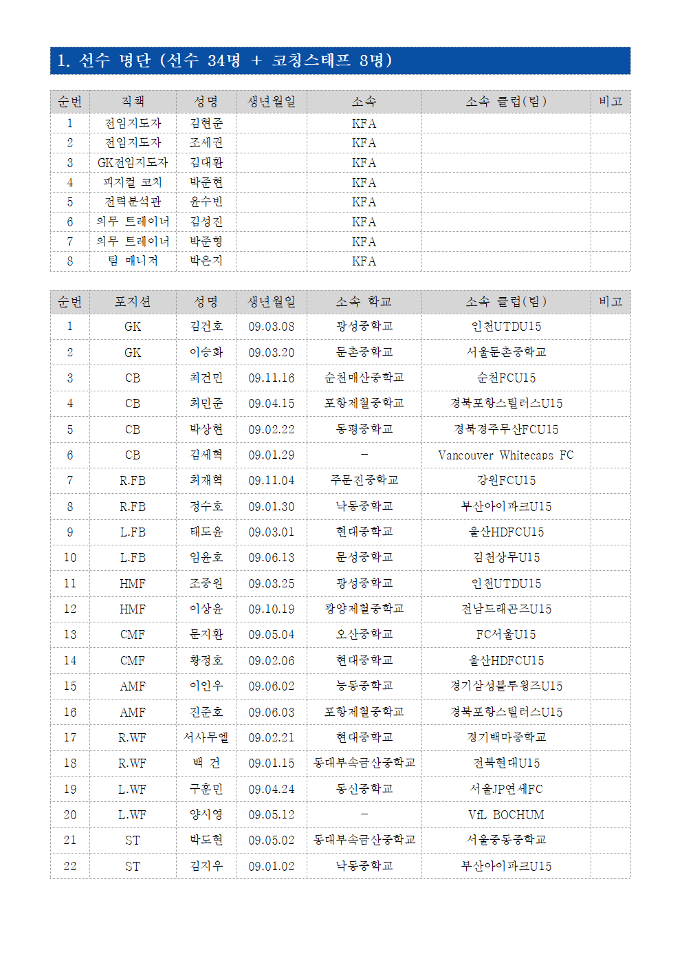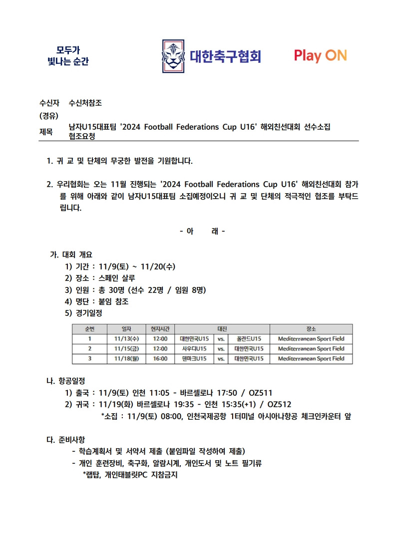 [스크랩] 남자U15대표팀 2024 Football Federations Cup U16 해외친선대회 소집공문(11월9일~20일=스페인 살루) 작성자블루문|작성시간24.11.06|조회수1,094 목록 댓글 5 글자크기 작게가 글자크기 크게가 다음검색 스크랩 원문 : 풋볼뉴스(Football News) 현재 게시글 추가 기능 열기 북마크 공유하기 신고 센터로 신고 댓글 댓글 5 댓글쓰기 답글쓰기 댓글 리스트 작성자A-style | 작성시간 24.11.06 추카추카 작성자넌 할수있다 | 작성시간 24.11.06 외국팀도 있네요 축하해요 작성자재봉s | 작성시간 24.11.06 멋지네요 작성자mil222 | 작성시간 24.11.07 축하합니다. 작성자험난..고된길 | 작성시간 24.11.08 축하합니다~응원합니다~ 댓글 전체보기
