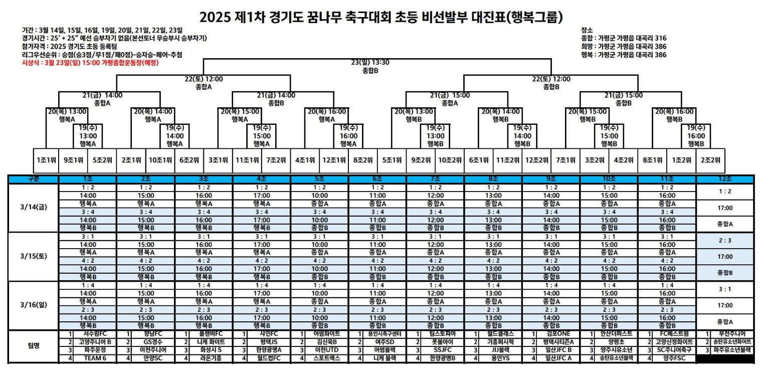[스크랩] 2025 제1차 경기도 꿈나무 축구대회(초등부-행복그룹) 일정&결과(3월14일~23일)우승 : 여주SDFCU12