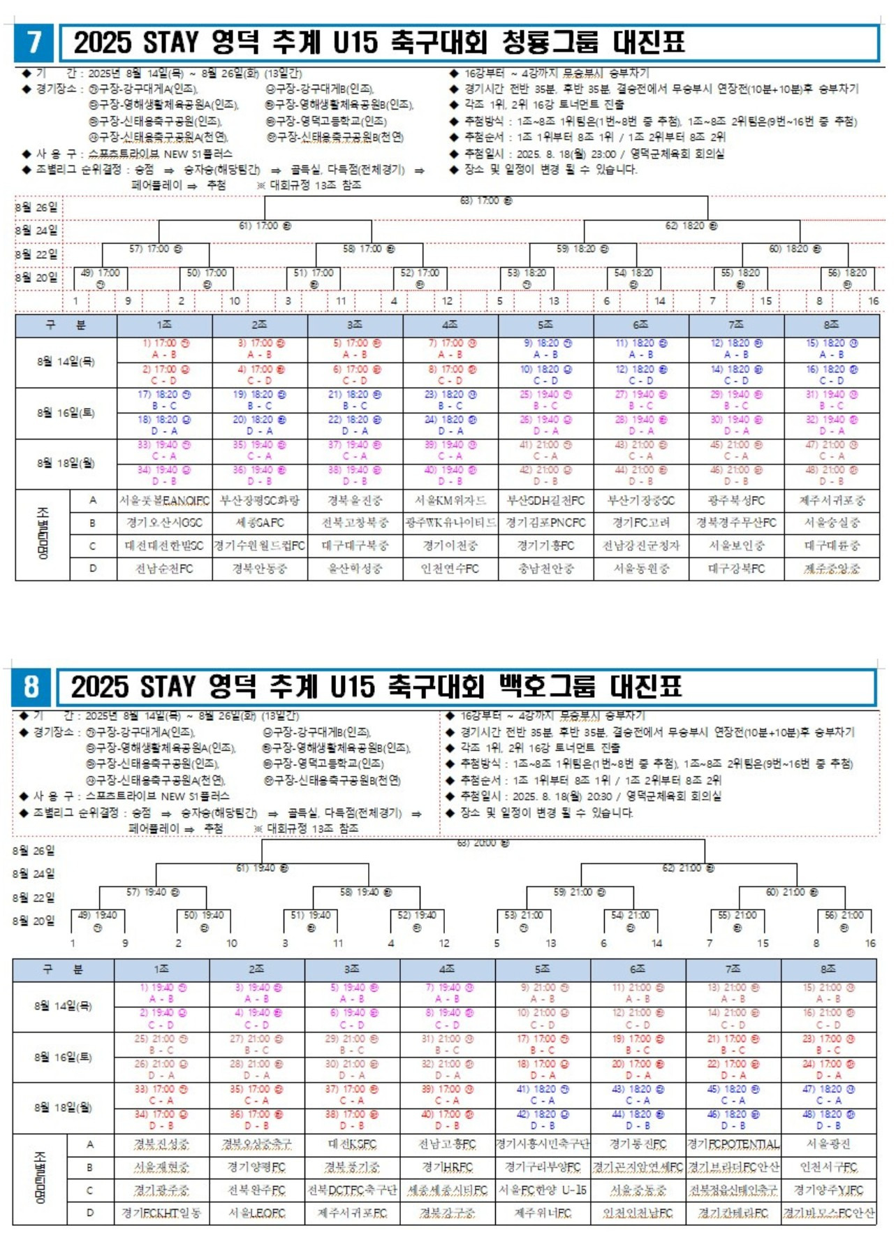 [스크랩] 2025 STAY 영덕 추계 U15 축구대회 대진표(8월14일~26일) 작성자블루문|작성시간25.07.15|조회수803 목록 댓글 2 글자크기 작게가 글자크기 크게가 다음검색 스크랩 원문 : 풋볼뉴스(Football News) 현재 게시글 추가 기능 열기 북마크 공유하기 신고 센터로 신고 댓글 댓글 2 댓글쓰기 답글쓰기 댓글 리스트 작성자연경민 | 작성시간 25.07.15 정보 감사합니다 작성자구루쑤루짱 | 작성시간 25.07.16 자료 감사합니다 댓글 전체보기