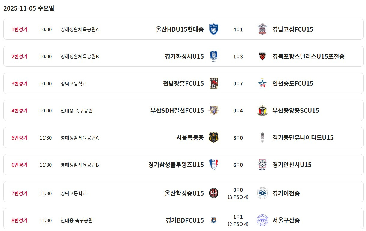 [스크랩] 2025 전국 중등 축구리그 왕중왕전 일정&결과(11월5일)=64강전 작성자블루문|작성시간25.11.05|조회수809 목록 댓글 2 글자크기 작게가 글자크기 크게가 다음검색 스크랩 원문 : 풋볼뉴스(Football News) 현재 게시글 추가 기능 열기 북마크 공유하기 신고 센터로 신고 댓글 댓글 2 댓글쓰기 답글쓰기 댓글 리스트 작성자레몬트리 | 작성시간 25.11.05 정보감사합니다 작성자따뜻한봄날의곰 | 작성시간 25.11.07 감사합니다 댓글 전체보기