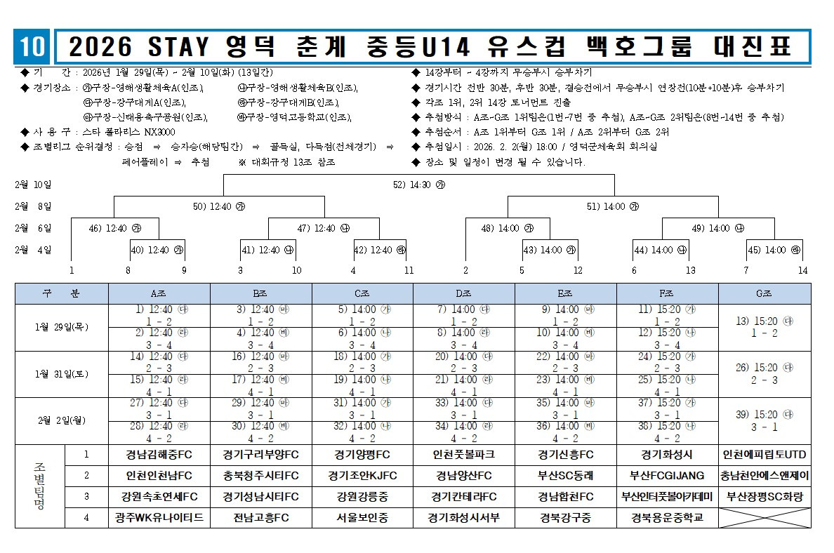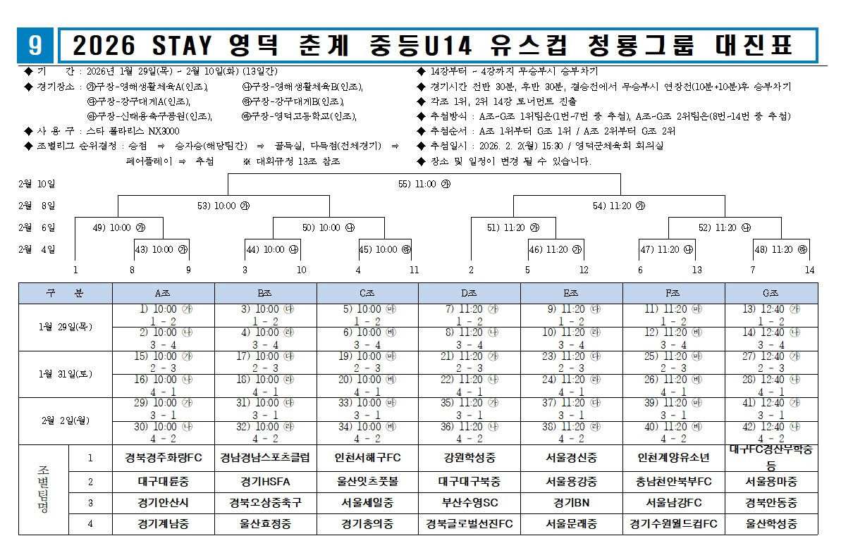 2026 STAY 영덕 춘계 중등 축구대회 대진표 알림
