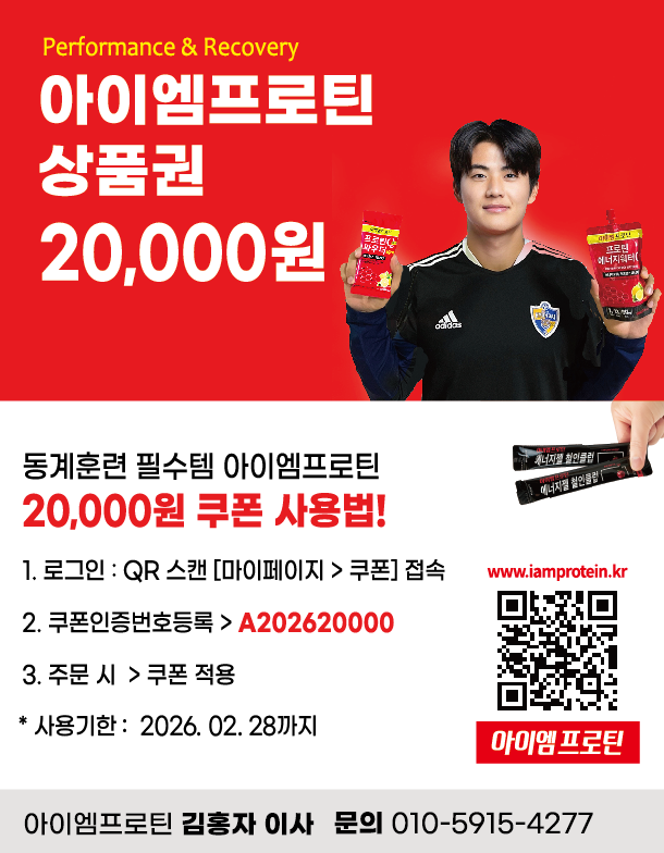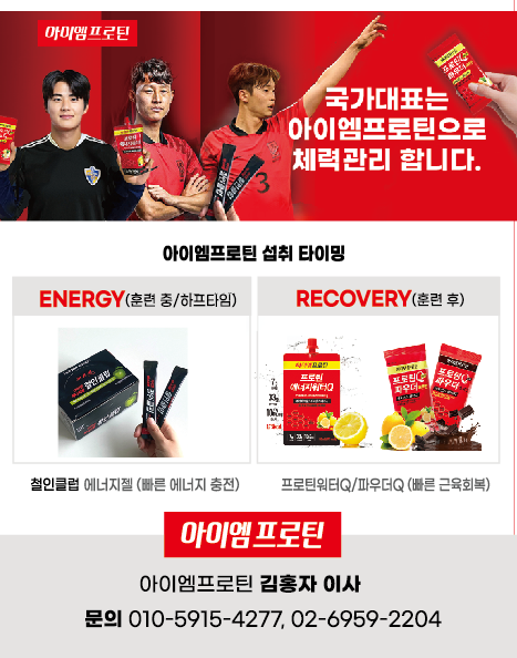 "국가대표는 아이엠프로틴으로 체력관리 합니다." 성장기인 우리 선수들은 몸이 곧 재산입니다.