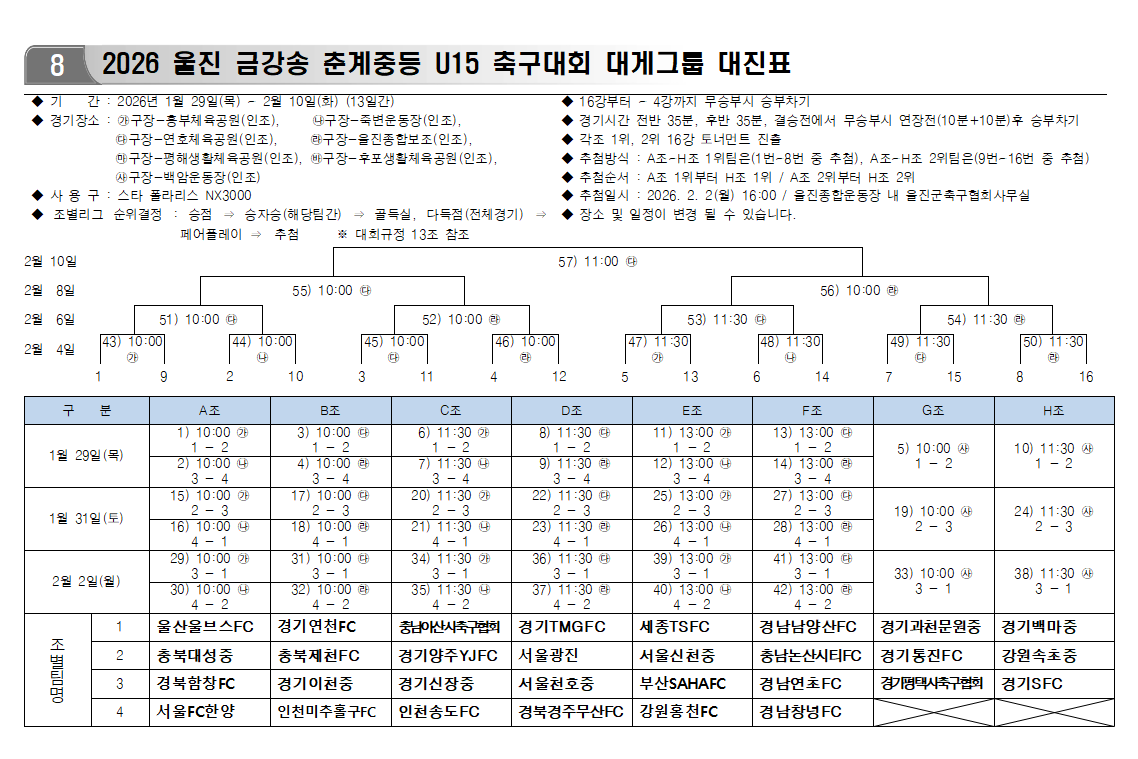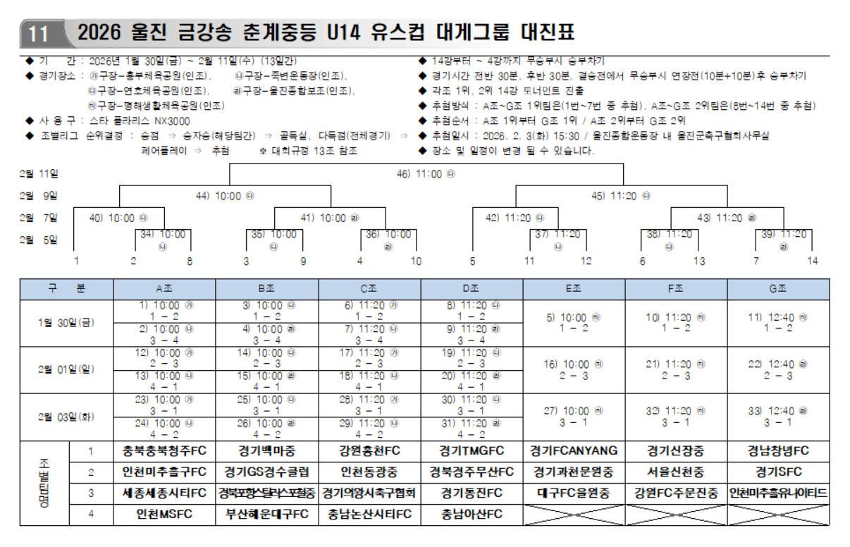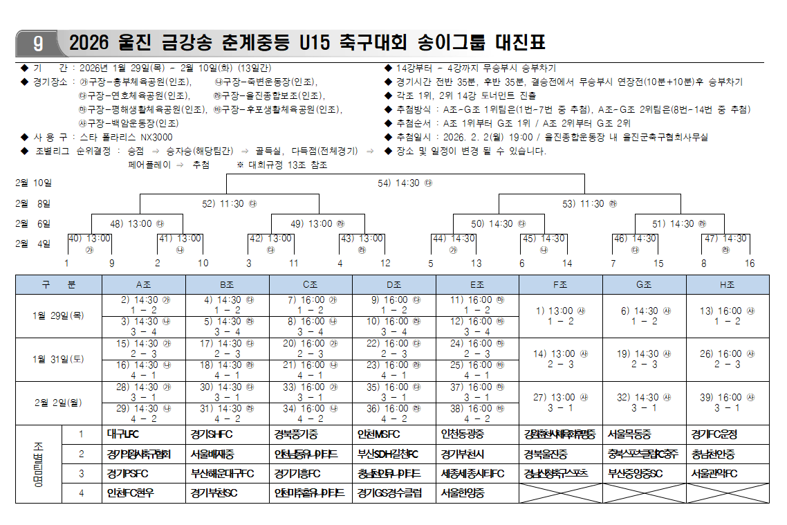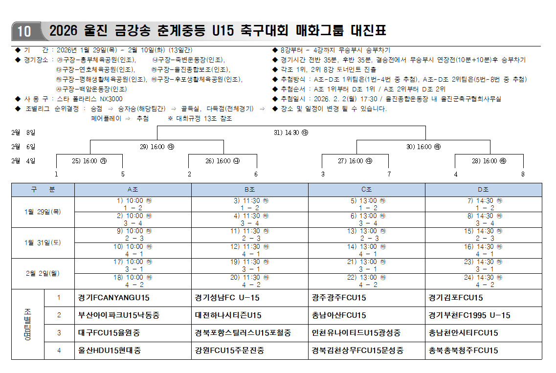 2026 울진 금강송 춘계 중등 축구대회 대진표 알림
