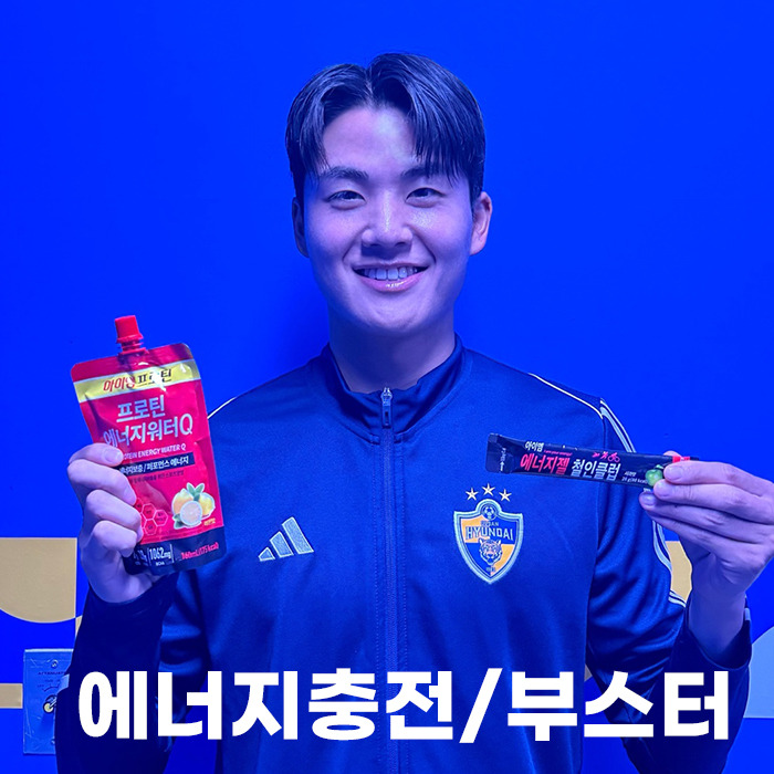 체력이 급격히 떨어지는 하프타임이나 훈련 중간에는 **'에너지젤 철인클럽'**을 챙겨주세요.