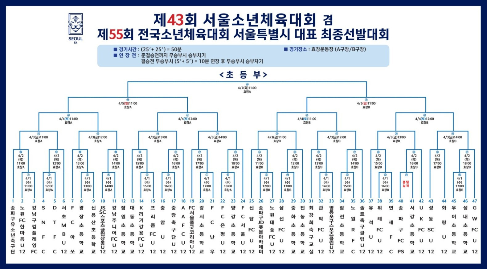 [스크랩] 제43회 서울소년체육대회 겸 제55회 전국소년체육대회 서울대표 선발대회(초등부) 일정&결과(4월1일~7일)서울대동초:서울노원RFC