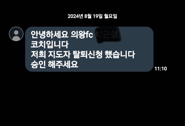 최왕길 입니다. 여기 익명방에 글을 쓰고 많은 분들이 연락이 왔습니다. 어떤분은 잘했다 꼭 이겨라. 어떤분은 너만 생각 해야 하니 그만하라. 많은 부분들을 생각하게 했습니다. 하지만 이제 이렇게 까지 했는데 그만 둘수 없다는 생각이 듭니다. 저는 그만 둘 생각이 없습니다. 아직도 뒤에서 제 이야기를 하고 있어서요. 그리고 마지막 글에 댓글들 대충 누군지 알겠습니다. 떳떳하다면 제 앞에 나와서 이야기 하세요. 난독증 이야기 하지마시구요. 저 그 감독에게 구체적인 금액 말한적 없습니다. 근데 부모님들에겐 제가 5천만원 말했다고 하던데 그만 거짓말 하시죠. 그리고 그 감독이 천만원 이야기 하는데 이야기 한적 없습니다 거부 한적도 없습니다. 그리고 그 당시 총무,내년에 회장한다는 사람(XX아버지) 전화 와서 울고 불고 총무 남편되는 아버지는 저녁에 협박 전화?? 그것에 대해 증거 자료 있습니다. 이것 때문에 제가 정신과 치료 받았구요. 그 회장아버지는 대회 가기전 수원에 한 호프집에서 만나 맥주한잔하며 대회 갔다가 와서 잘 해결 할 수 있게 하겠다 등 그 이후 연락 한번 없고 제 연락도 안받았습니다. 그것 또한 증거 있구요. 전화 기록 보여 달라고 하면 보여줄게요. 또 총무는 다른 부모님한테 “니 믿을 구석 없어졌으니 나를 믿어라” 하고 카톡 했구요. 그것 때문에 가만히 있는 제가 왜 그 부모님께 싫은 소리 듣죠?? 도대체 어떻게 생각하고 어떻게 처신 했길래... 여기에 관련 없는 학부모님까지 끌어 드리죠? 무엇이 무서워서??!! 부모님들 다 같이 모여서 이야기하자고 정식적으로 공문까지 만들어서 밴드에 공지 했는데 거기에 답변이 있었나요?! 그리고 저 한테 내용 증명서 보내셨어요?! 댓글을 만들려고 한것 같은데 제대로 만들시죠~ 통화 녹음 등 다 있습니다. 다시 한번 순서 말씀 드릴게요. 또 난독증이라고 하시지 말고 잘 보세요. 5월 달 대회 가기전 7월달 대회 선택 해야 하는데 그때 총무라는 사람이 울고불고 해서 저희 대표자 어머니도 마음 약하고 애들이 무슨 죄냐 하며 대회 출전 하자 하고 선택 했고 다른 부모님들께서도 고맙다며 문자 왔습니다. 그리고 계속 출전 보장 했라고 했죠? 그 감독이 팀 아이디,비번 알아야 한다고 그걸 왜 회사 기밀인데 알려줘야 하나요? 다른거 제가 협조 안했나요?? 그리고 나서 내용증명서 보냈구요 근데 여기서 내용증명서 그 감독과 똑같이 보냈다고 하는데 왜 감독은 미리 알고 저희 친형 한테 전화 해서 “학부모님들이 내용증명서 보냈어 왕길이 지도자 하는데 힘들수도 있어”라고 전화 왔다는데 협박해요?! 그리고 나서 대회 끝나고 아무도 연락 없고 그 감독이 대표자에게 문자 보냅니다. 잘 협상 할려고 하는데 최왕길 코치 태도가 뭐냐 하면서... 우리 대표자는 모르니깐 또 없는말 하면서 중간에 이갈질하고... 제자 한체 도대체 왜 그래요?? 그리고 그 감독 대회 승인 해주니 “최선생 고마워 ” 그리고 그 코치님들 탈퇴는 제 범인에 계약 한 사람 아니여서 그 코치님께 정식으로 연락드렸습니다. 의왕FC 에 코치로 등록 할려면 저희 회사와 계약을 해야 한다. 아님 저희 팀 라이센스에서 나가야 한다 그리고 그 코치님들께서 스스로 탈퇴 신청하고 나간다고 했습니다. (사진 참고)