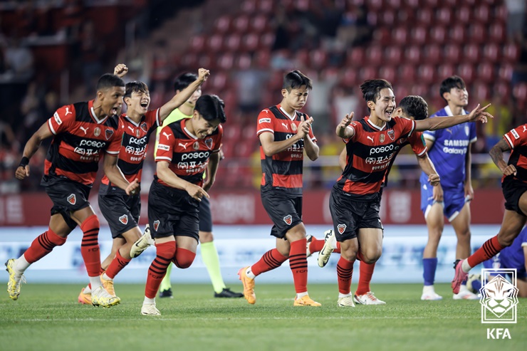 올해 코리아컵 4라운드에서 승부차기 끝에 승리한 포항. 이 기세를 몰아 코리아컵과 K리그1에서 우승 경쟁을 이어가겠다는 각오다