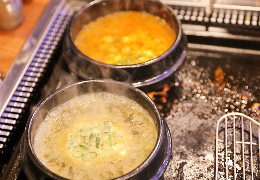 그리고 이곳의 찌개도 맛있고 국도 맛있는데요 .