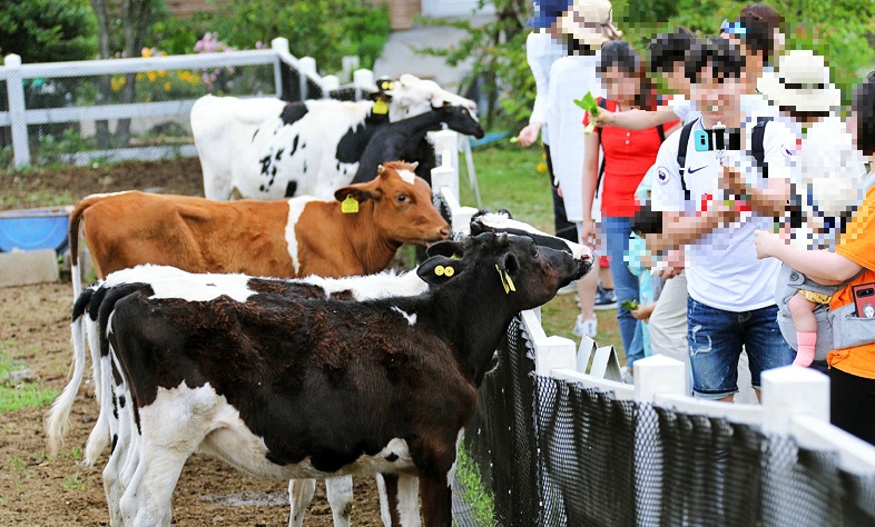송아지들에게 우유를 주는 체험도 있고 큰 젖소들에게 먹이를 주는 체험도 있었습니다.