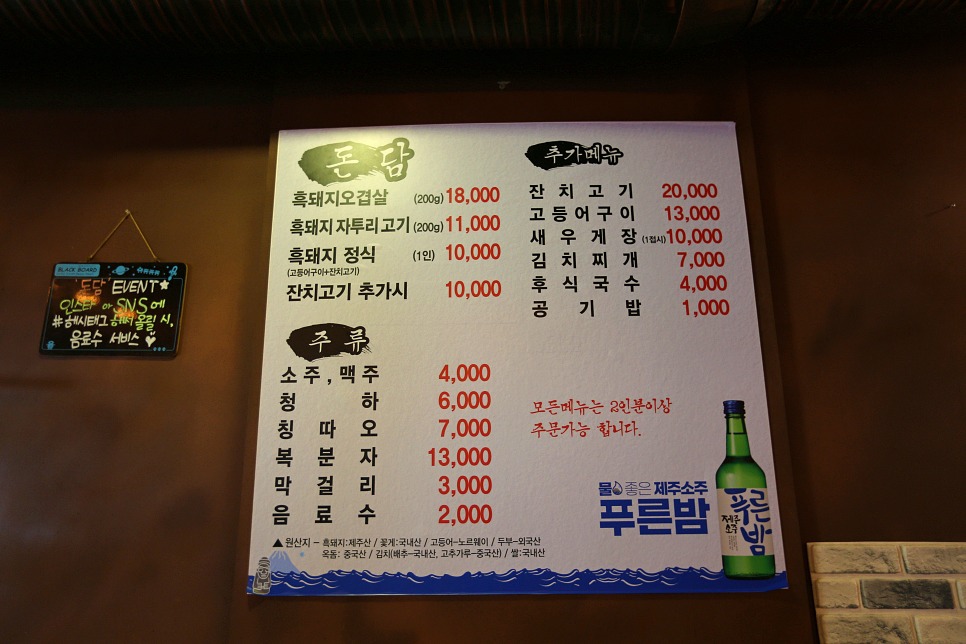 요근래에는 돈담에가서 1인분 1만원 ( 2인분 이상 주문가능 ) 짜리 흑돼지 정식을 먹고왔는데