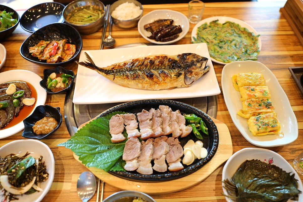 흑돼지 정식은 고등어구이 , 흑돼지 잔치고기 , 새우장을 중심으로 해서