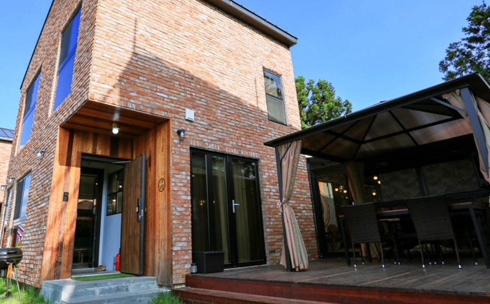 화장실 2개에 주방, 거실 , 단독마당등도 있었으며 실외에서 바베큐도 할수있었는데 예약해야 했어요.