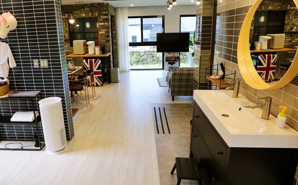 제주도 서쪽 애월에 자리잡고 있으며 독채로 되어있구요 .