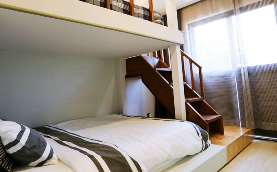 지상침대 더블베드와 이층침대도 있었구요.
