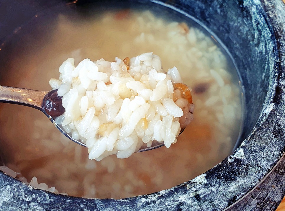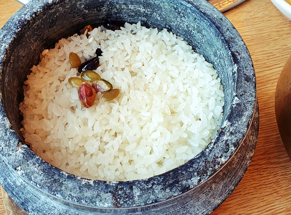 이 돌솥밥에는 물을 좀 담궈두면 ! 나중에 마무리로 숭늉먹기 좋아요.